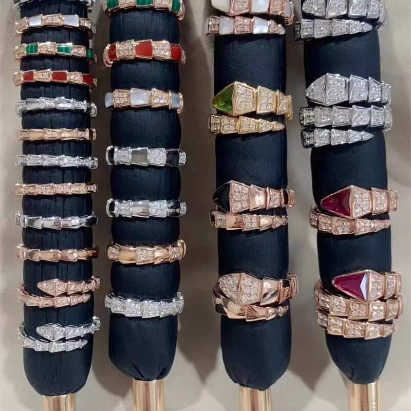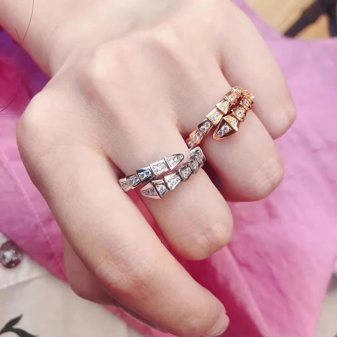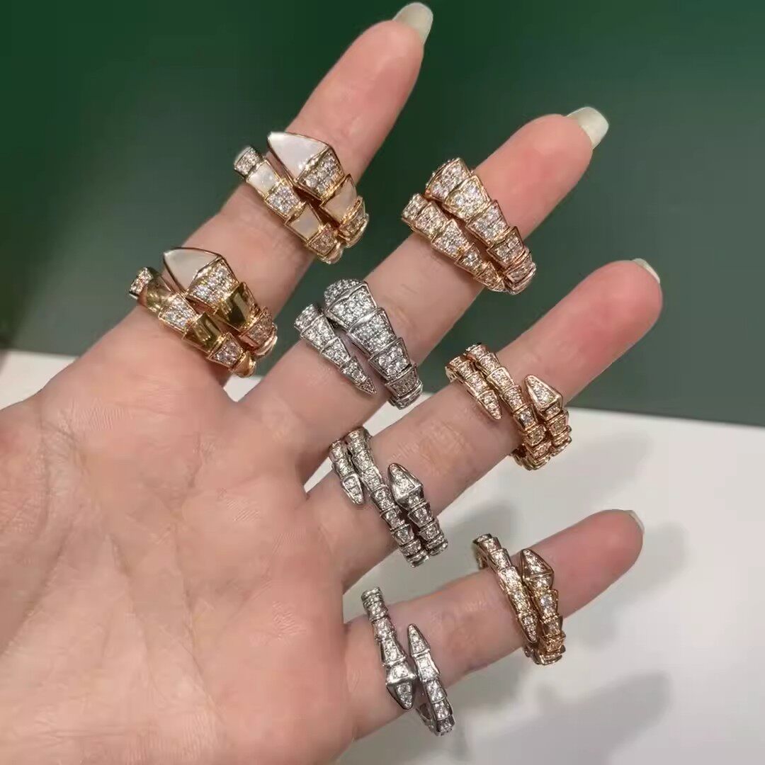 蛇形满钻戒指女莫桑钻蛇骨指环食指精工戒时尚首饰玫瑰金贝母戒指
