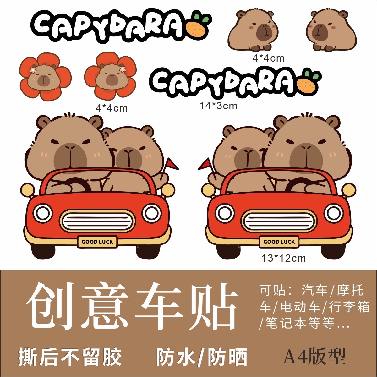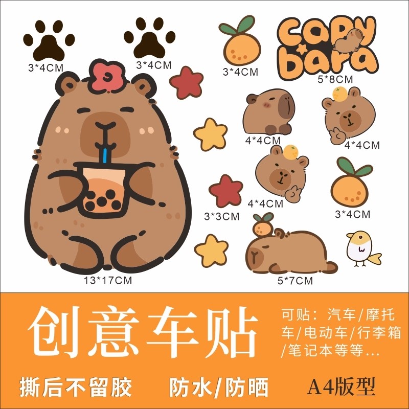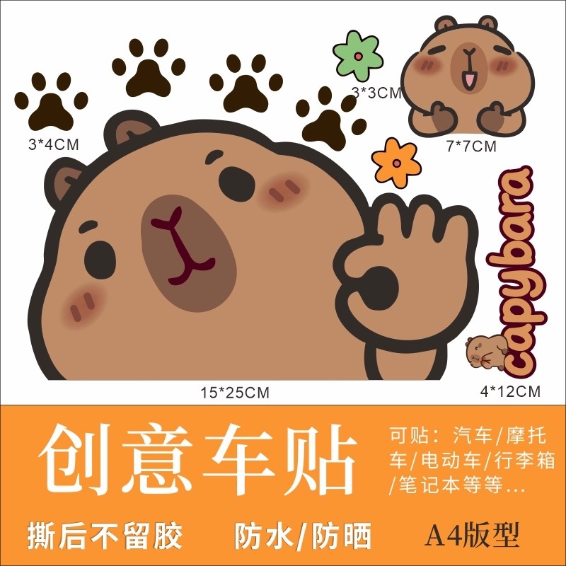 防水动漫卡皮巴拉电动车贴纸摩托车贴纸卡通遮划痕个性创意装饰贴