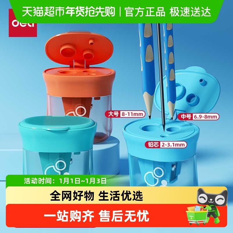 得力卷笔刀小学生专用卷笔刀幼儿园转笔刀三孔削笔刀粗细都能削