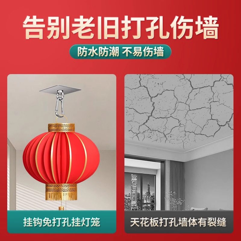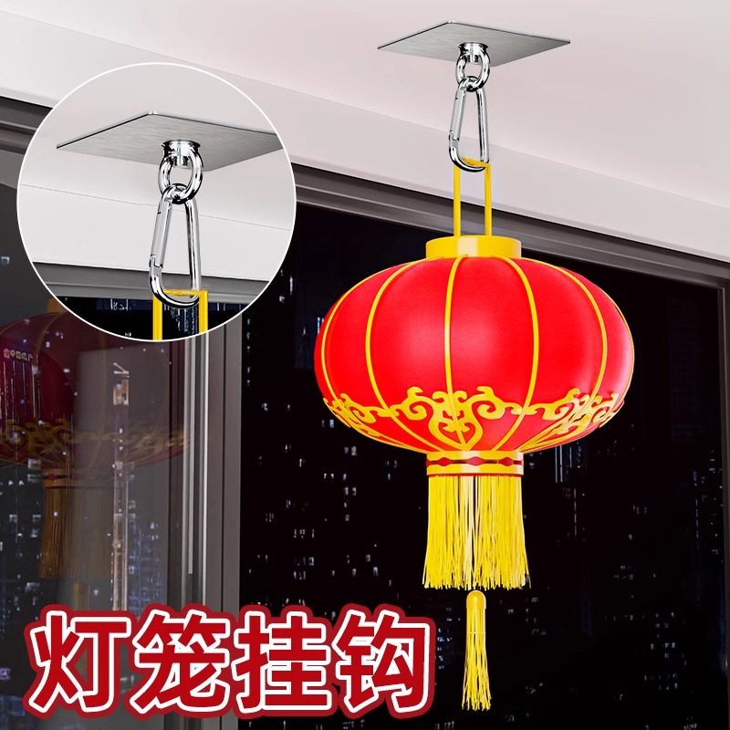 灯笼专用挂钩免打孔强力承重不锈钢粘钩阳台庭院天花板顶部固定吊钩春节过年装饰布置强力胶带对联无痕贴神器