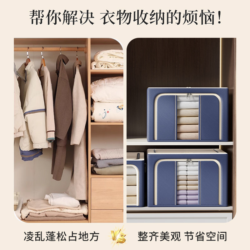 佳帮手衣服收纳箱家用装衣物被子百纳箱布艺可视窗衣柜专用整理箱