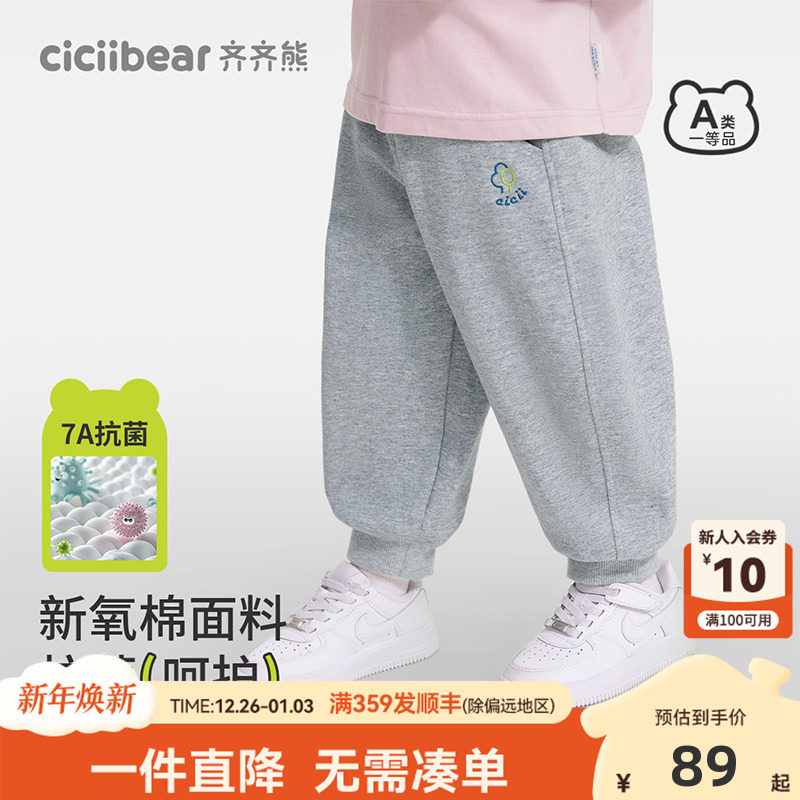 [7A抗菌]齐齐熊男童裤子春秋款宝宝卫裤秋季儿童运动裤2025休闲裤
