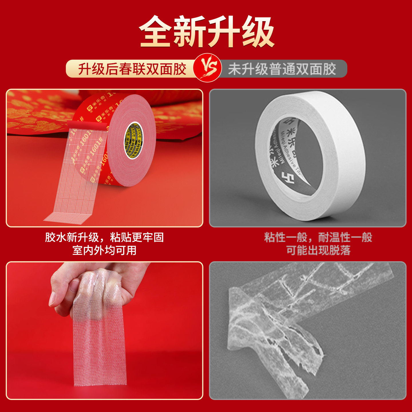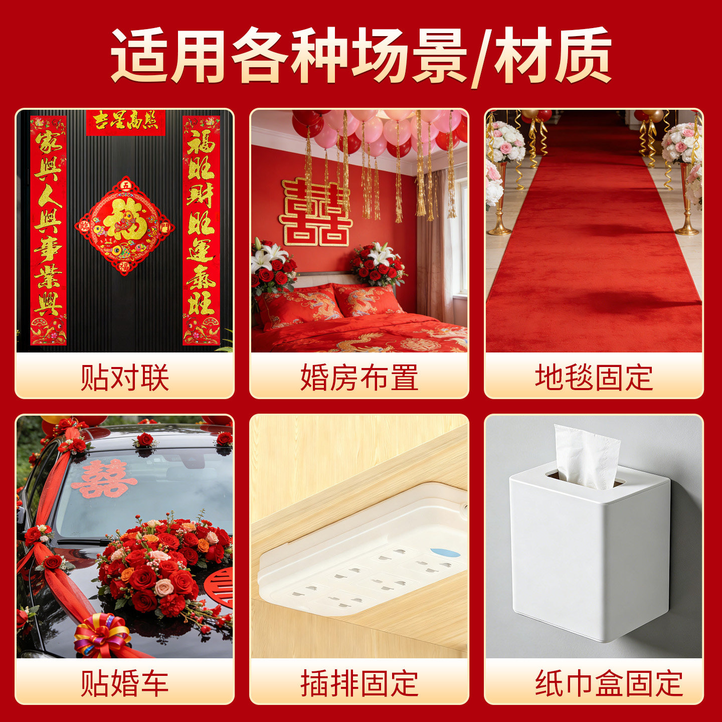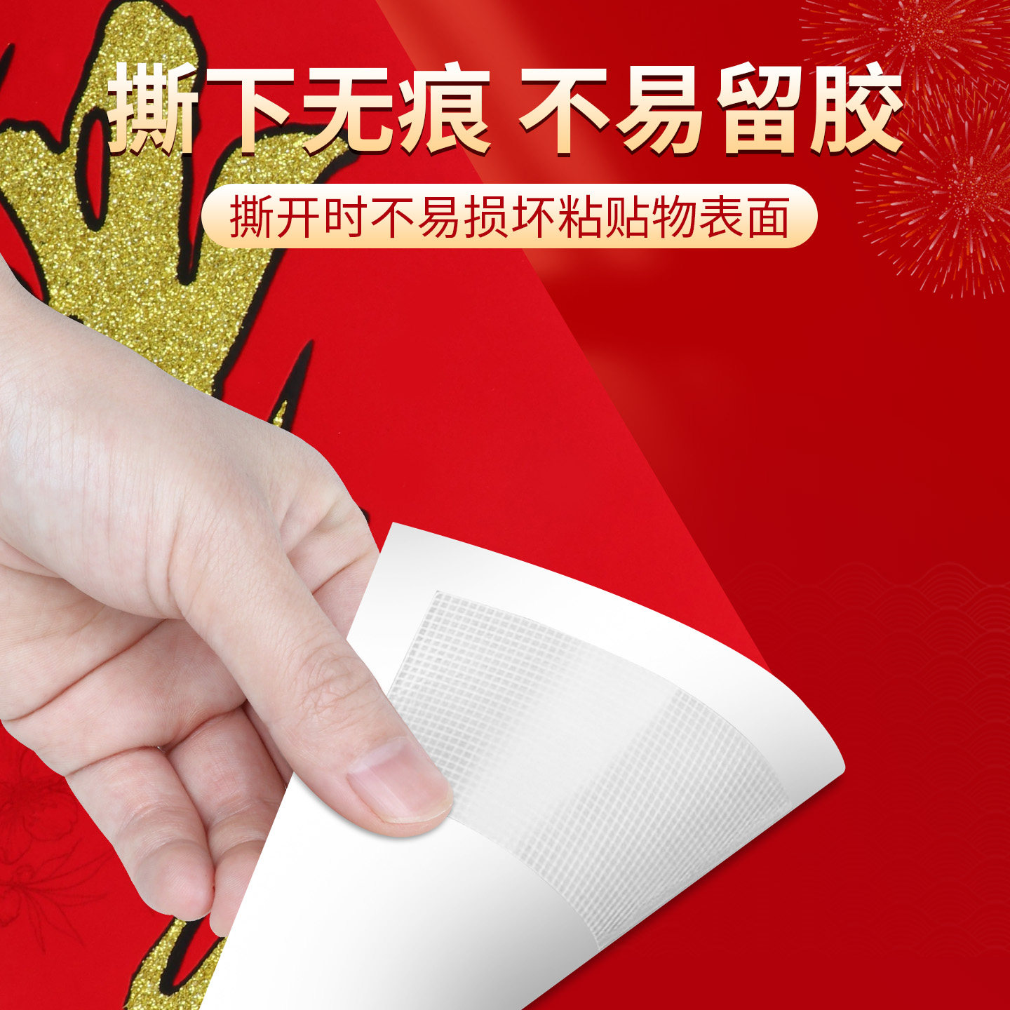 米乐奇贴对联专用胶不留痕墙面春联专用婚房婚车装饰强力自粘红色布基双面胶喜字福字年画展会地毯防滑胶布