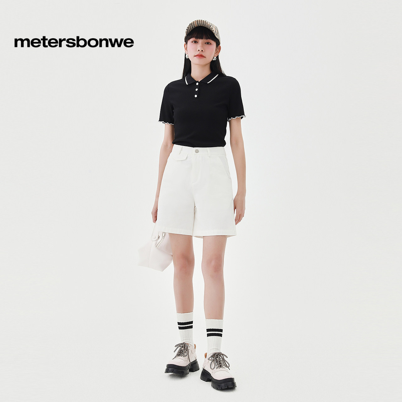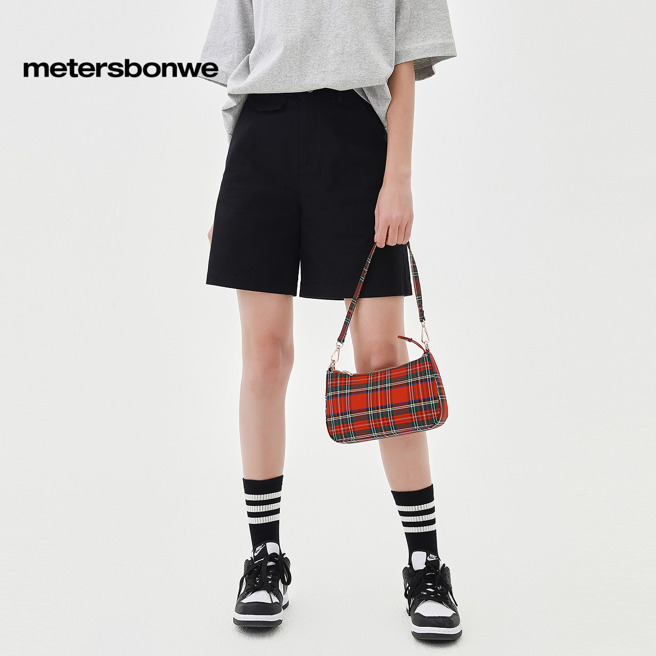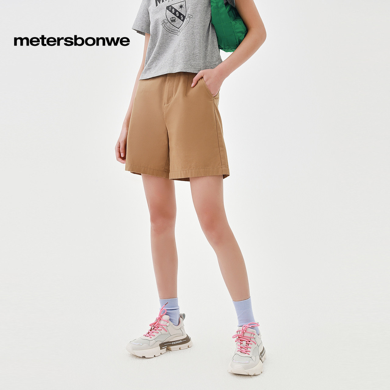 美特斯邦威系带短裤女夏季时尚潮流舒适百搭通勤修身撞色五分短裤