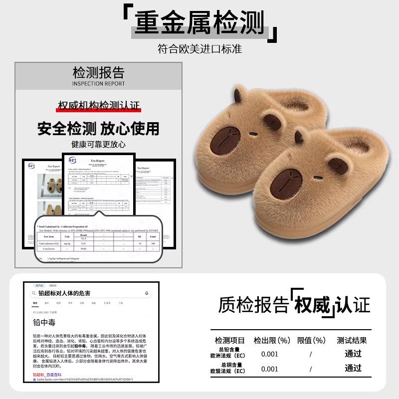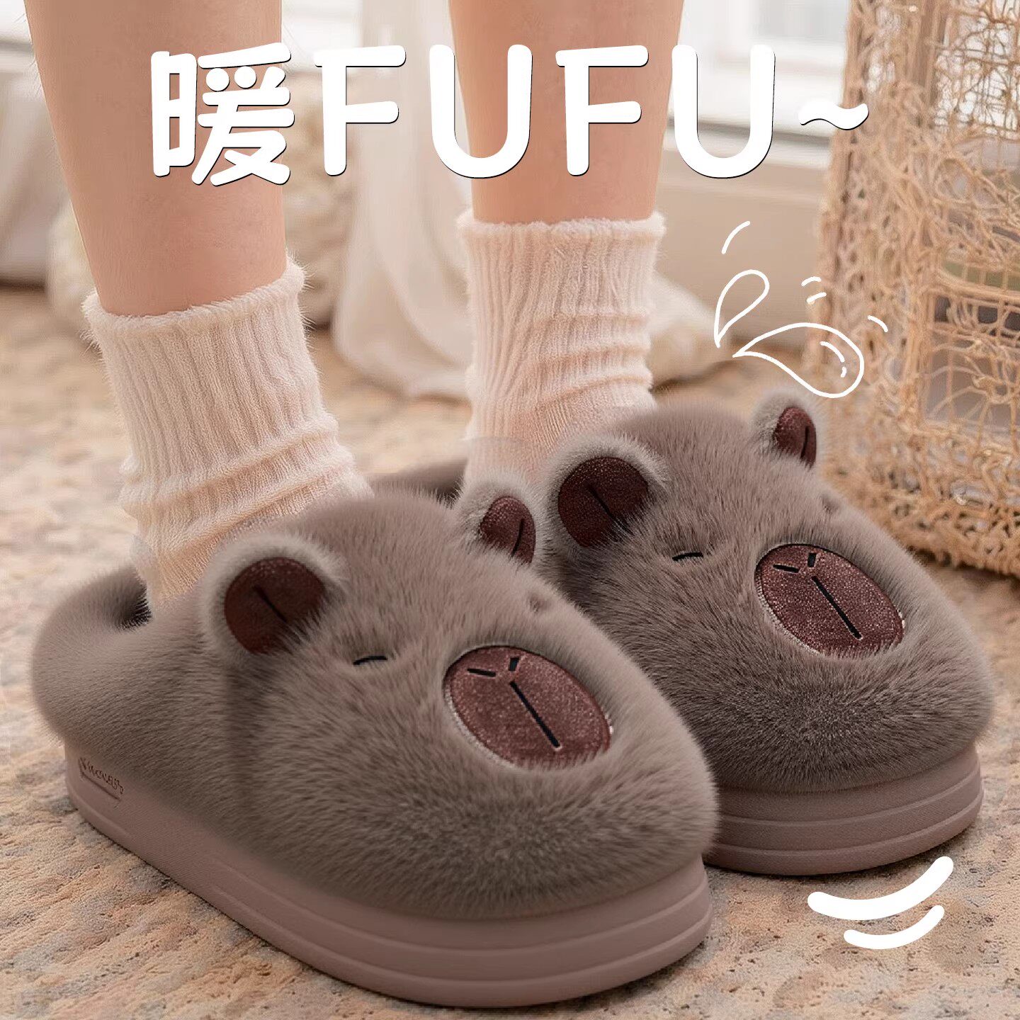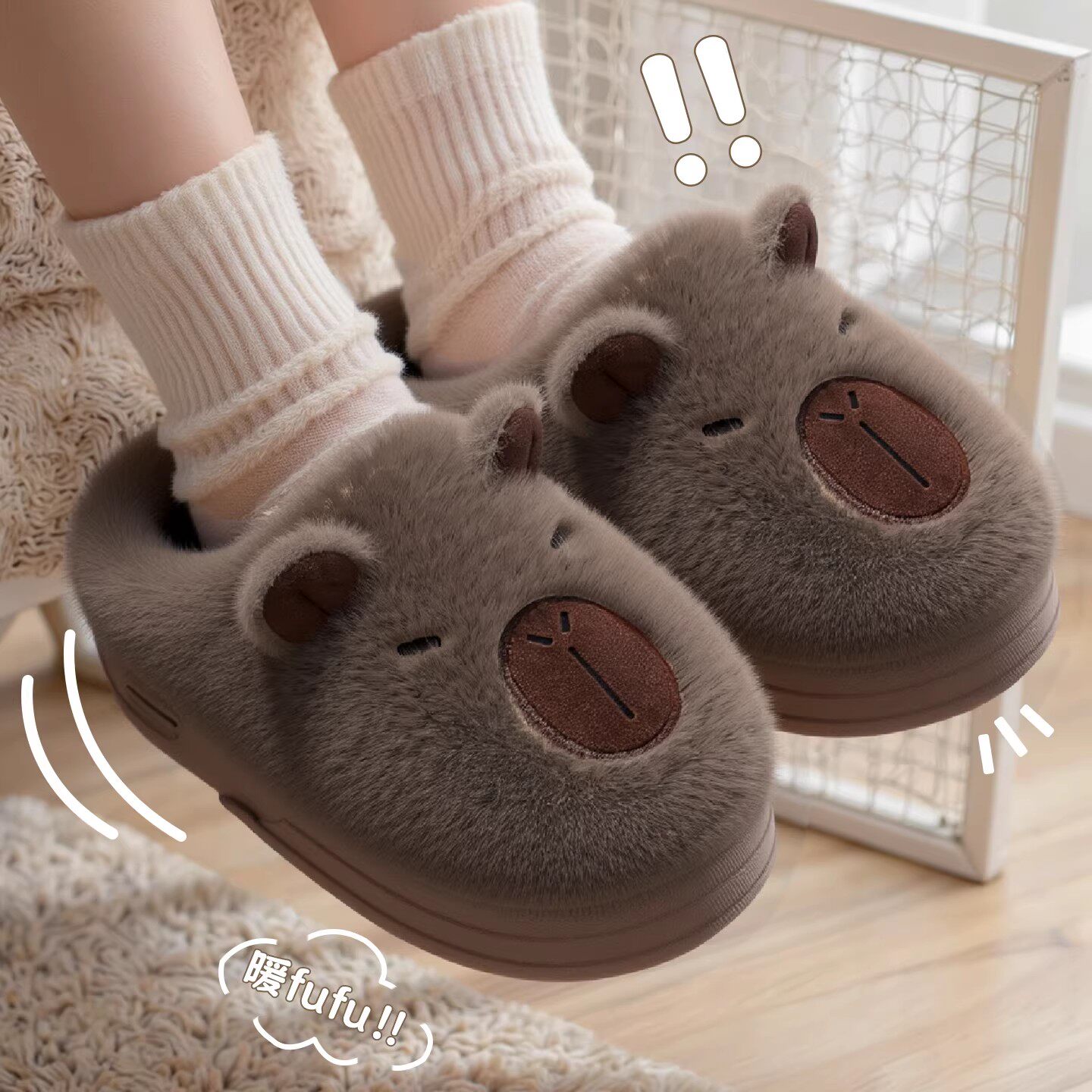 赛眸儿童棉拖鞋女冬季新款室内家居加厚保暖卡皮巴拉亲子毛绒拖鞋