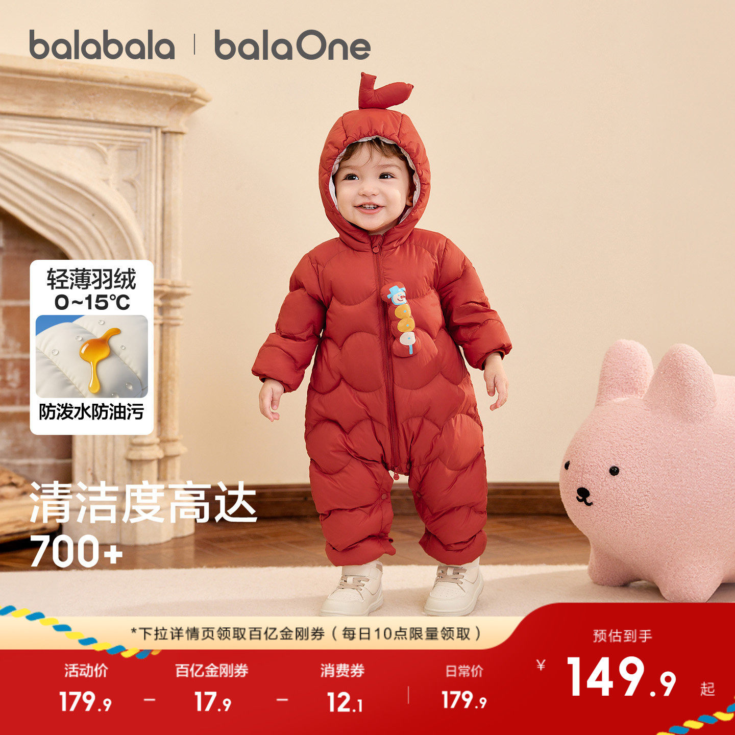 巴拉巴拉儿童轻薄羽绒服男女童婴儿连体衣2025宝宝冬装拜年服红色