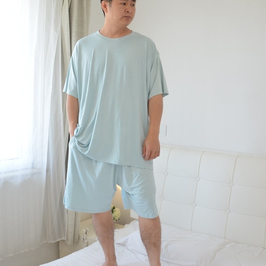 300斤超肥加大码艾草纤维莫代尔短袖短裤睡衣男夏季家居服200斤
