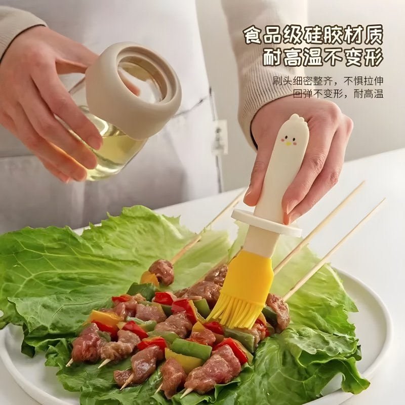 油刷食品级家用耐高温一体玻璃油瓶烧烤烘焙专用厨房刷油硅胶刷子