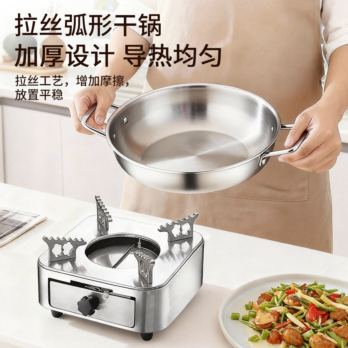 不锈钢酒精炉干锅锅具家用锅仔炉子酒精块户外2025新款小火锅便携