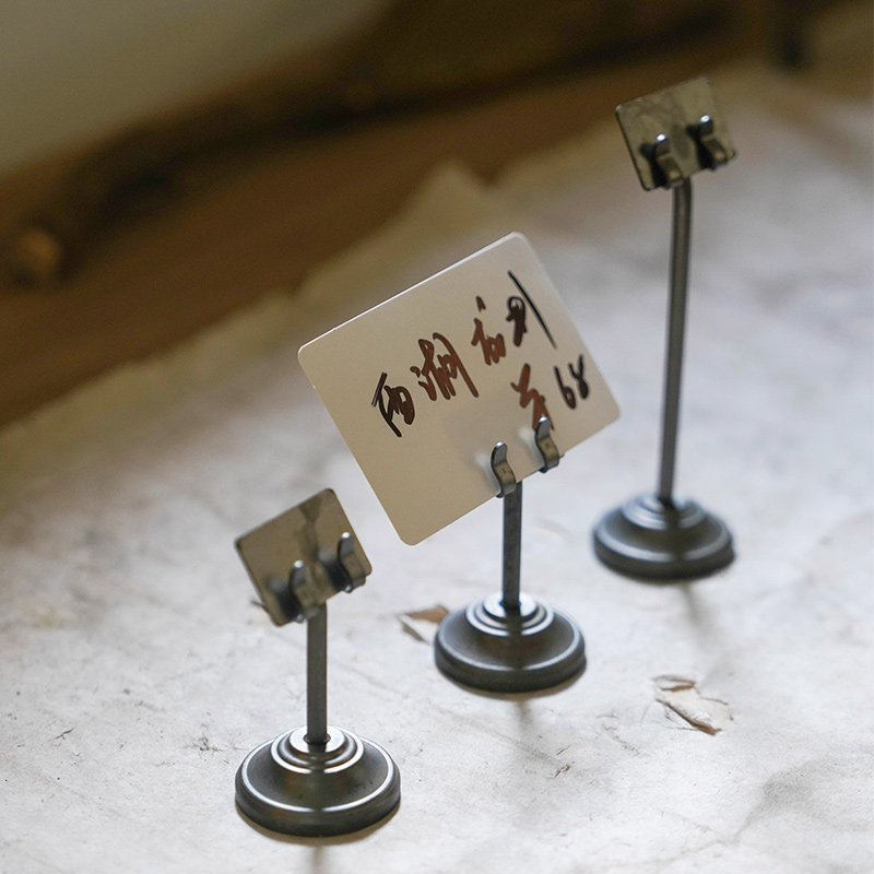 日式复古铁艺做旧装饰便签夹标签夹 高档立式桌面卡片夹桌牌立牌夹茶叶古董烘焙价格牌标价签展示夹pop广告夹