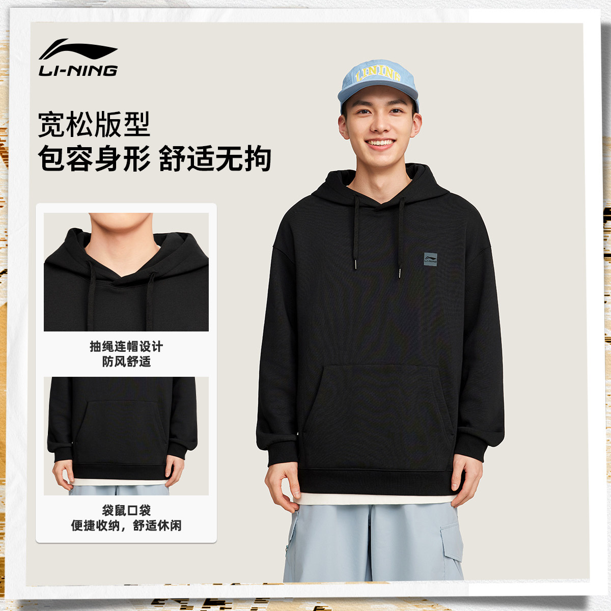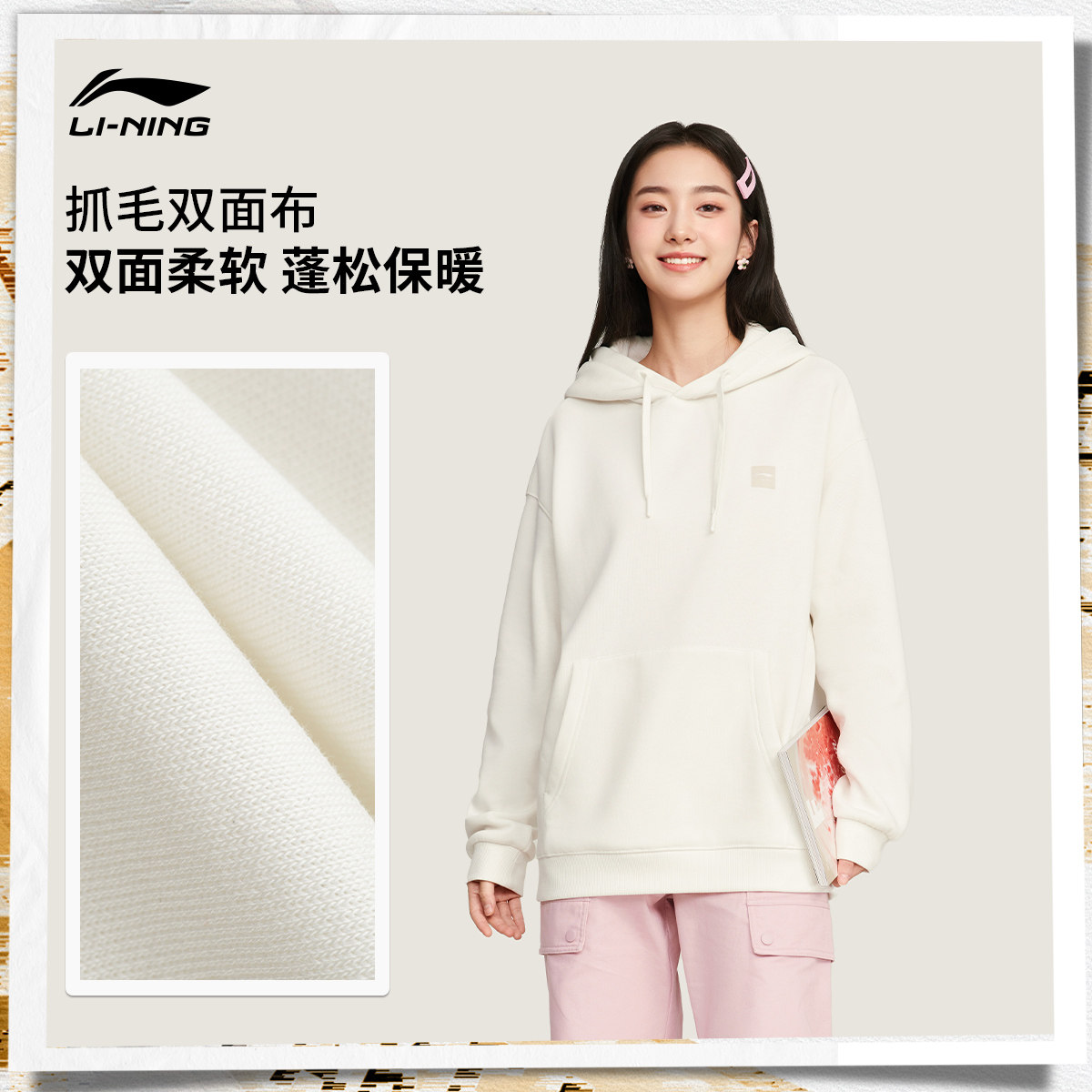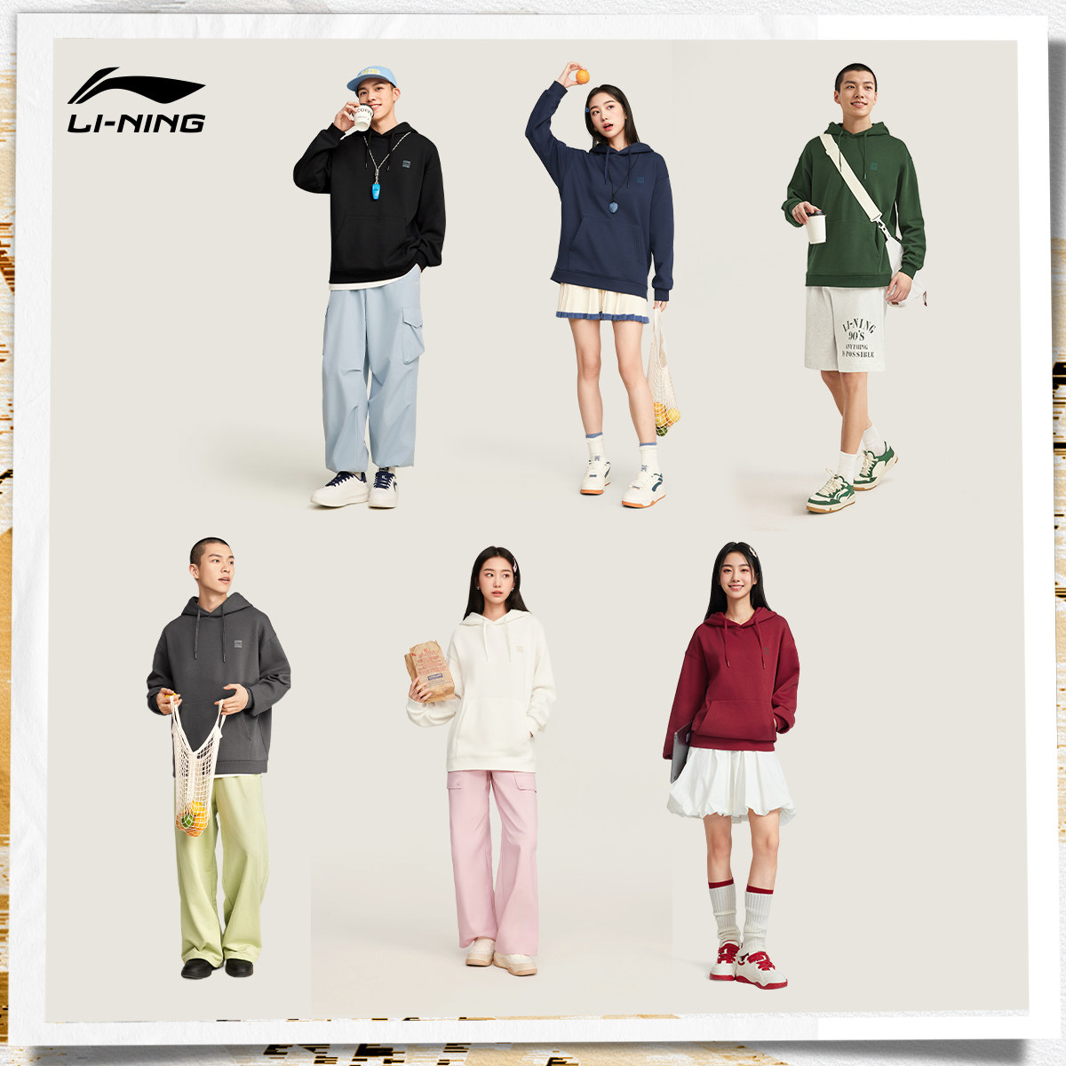 李宁卫衣男女25秋冬新款情侣连帽上衣休闲加绒长袖帽衫宽松运动服