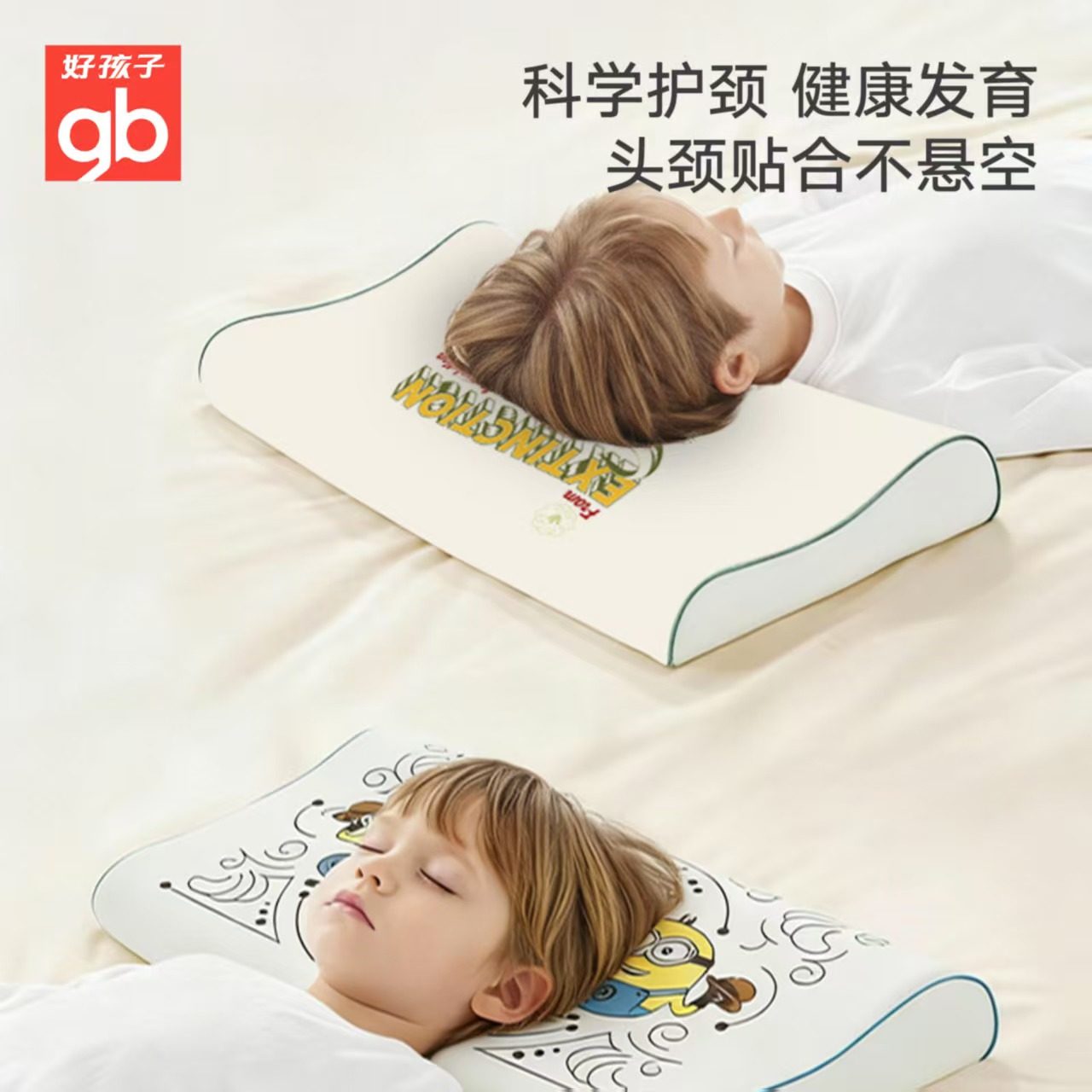 gb好孩子婴儿7A抗菌可水洗透气护颈枕头小黄人IP联名儿童乳胶枕头