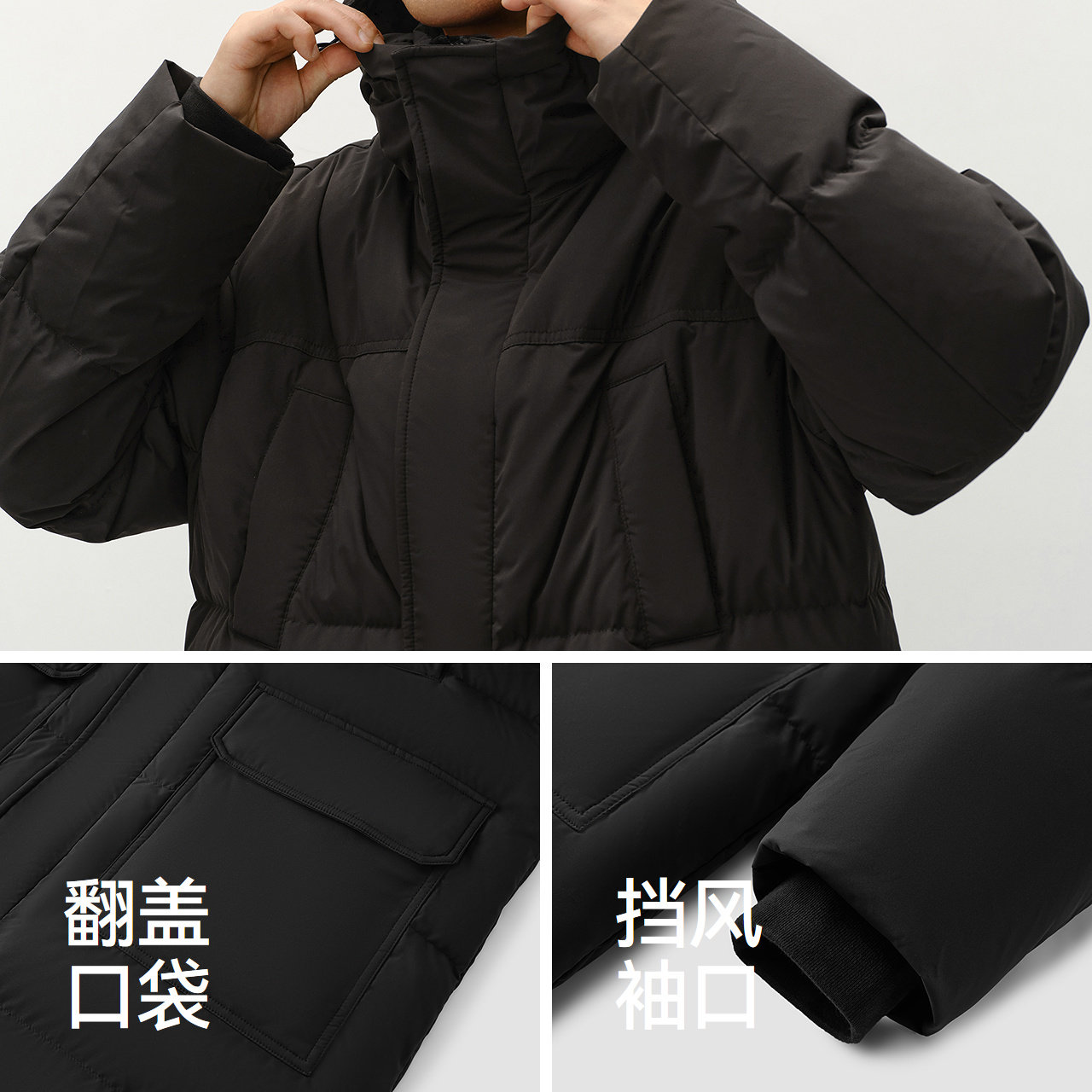 骆驼男装秋冬黑色加厚保暖鸭绒短款面包服男女同款防水羽绒服外套