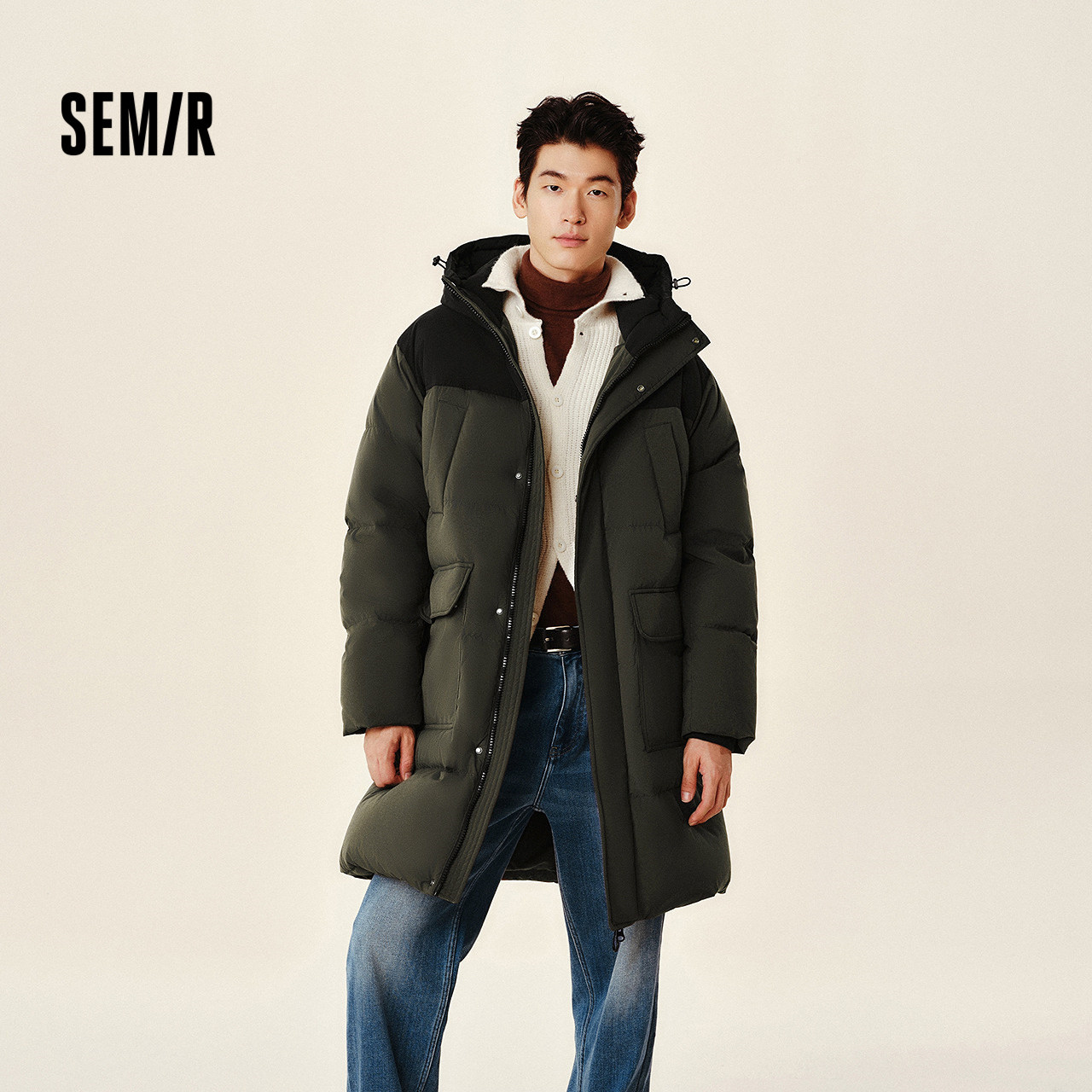 轻松|森马羽绒服男冬装90绒子加厚防泼水外套长款连帽上衣情侣款