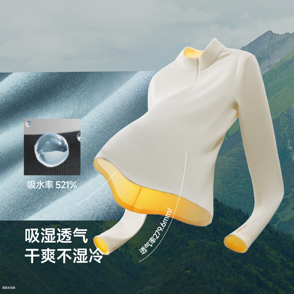 蕉下摇粒绒打底衫女秋季新款半高领保暖加绒亲肤内搭上衣肌底衣