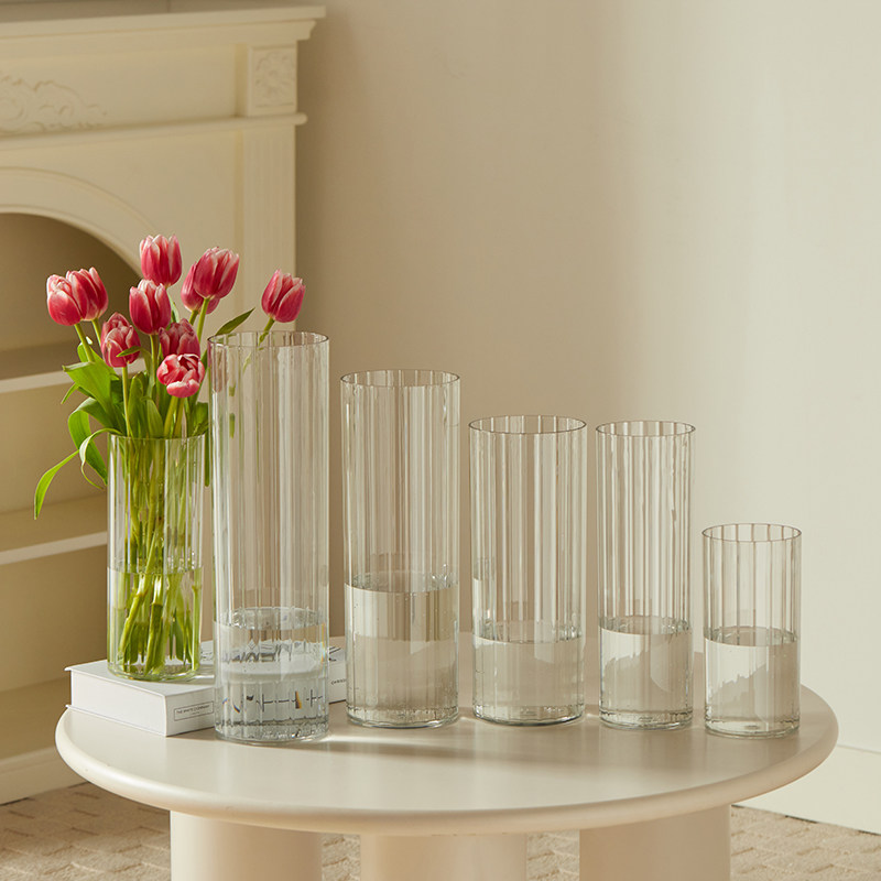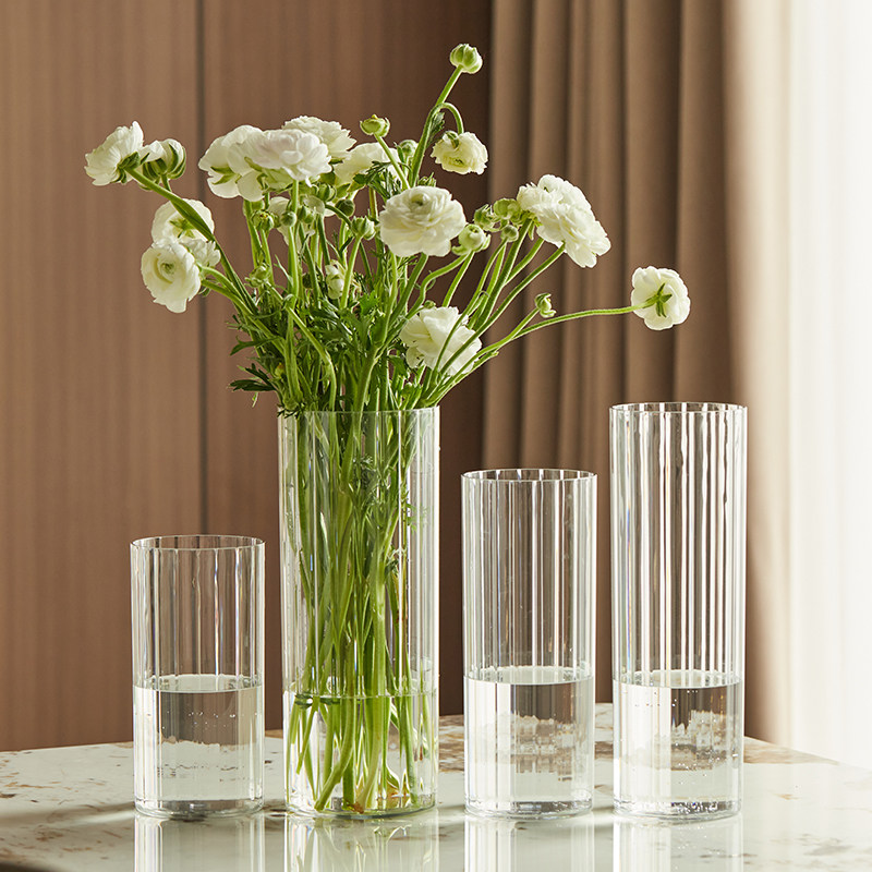 轻奢玻璃花瓶直筒透明水养鲜花百合富贵竹ins高颜值客厅装饰摆件