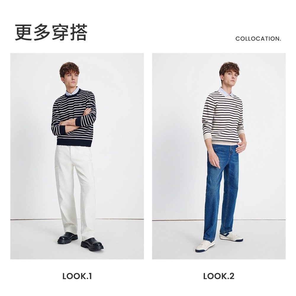 森马毛衫男冬季满版提花针织衫撞色毛衣宽松套头衫百搭提花潮-TK