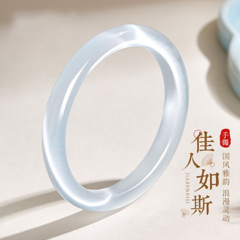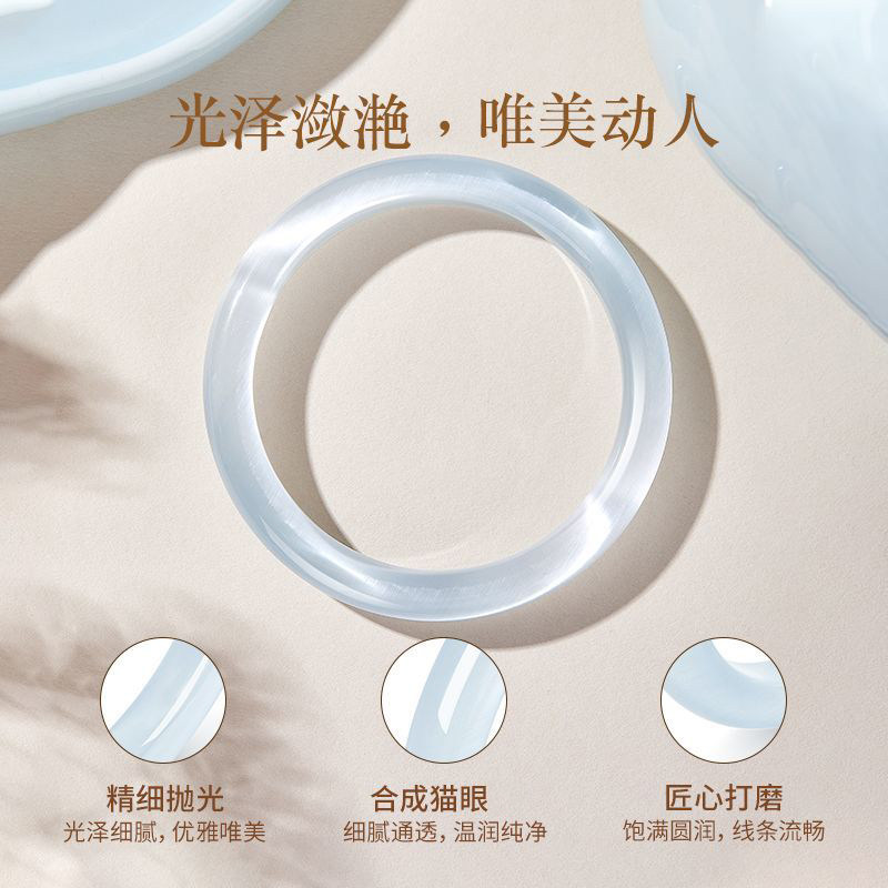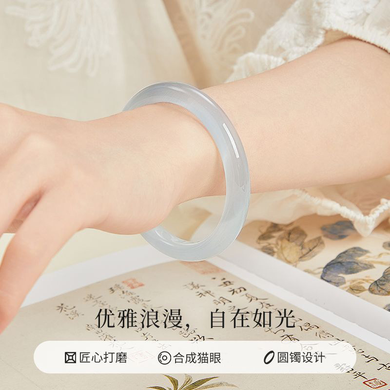 冰冰蓝猫眼效应手镯女国风冰种玻璃百搭高级感创意礼物送女友闺蜜
