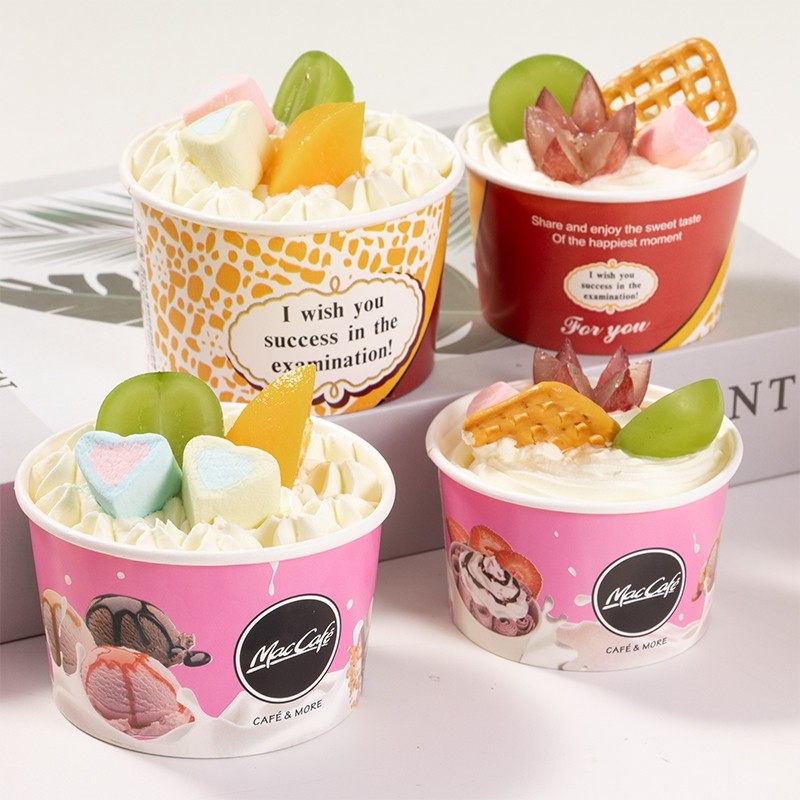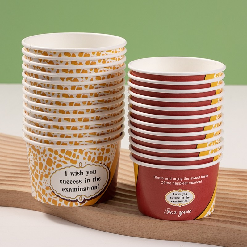 食品级加厚一次性冰淇淋纸碗小纸杯冰激凌带盖布丁专用打包盒纸质