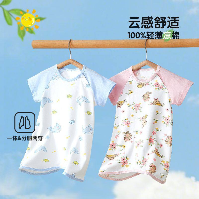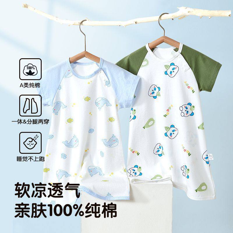 婧麒婴儿睡袍夏季薄款纯棉儿童睡袍防踢被宝宝睡裙家居服连体睡衣