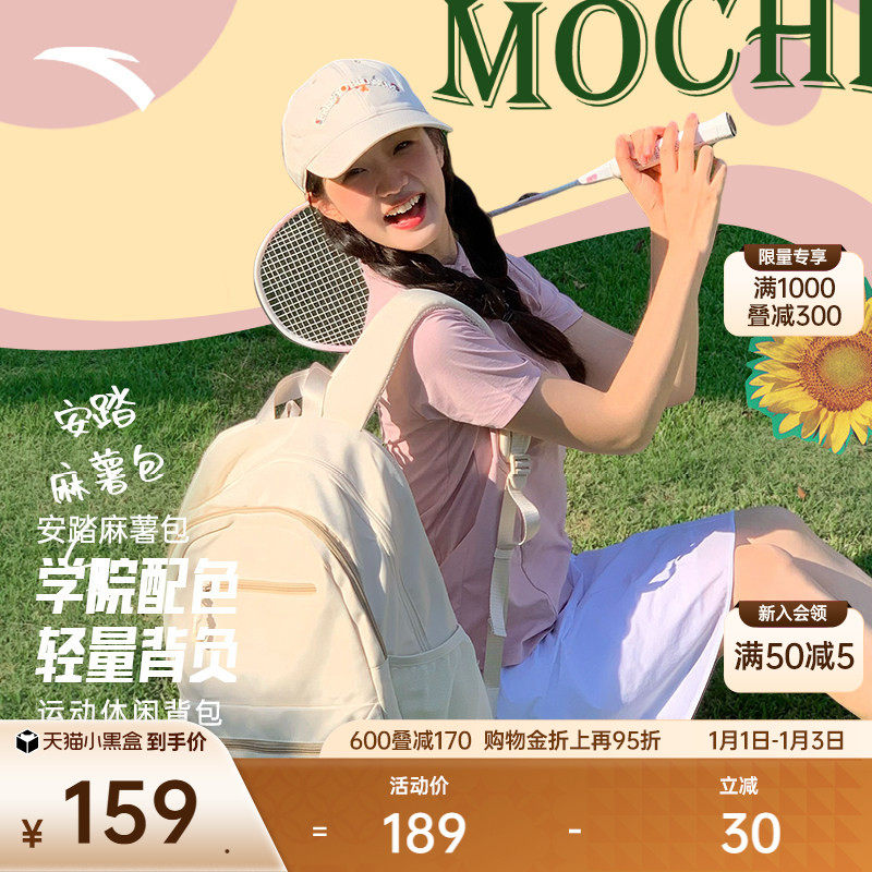 安踏麻薯包大容量大学生双肩背包男女旅行电脑大学生书包初中女生