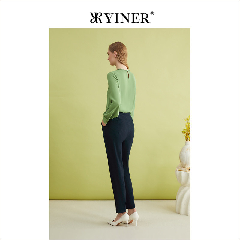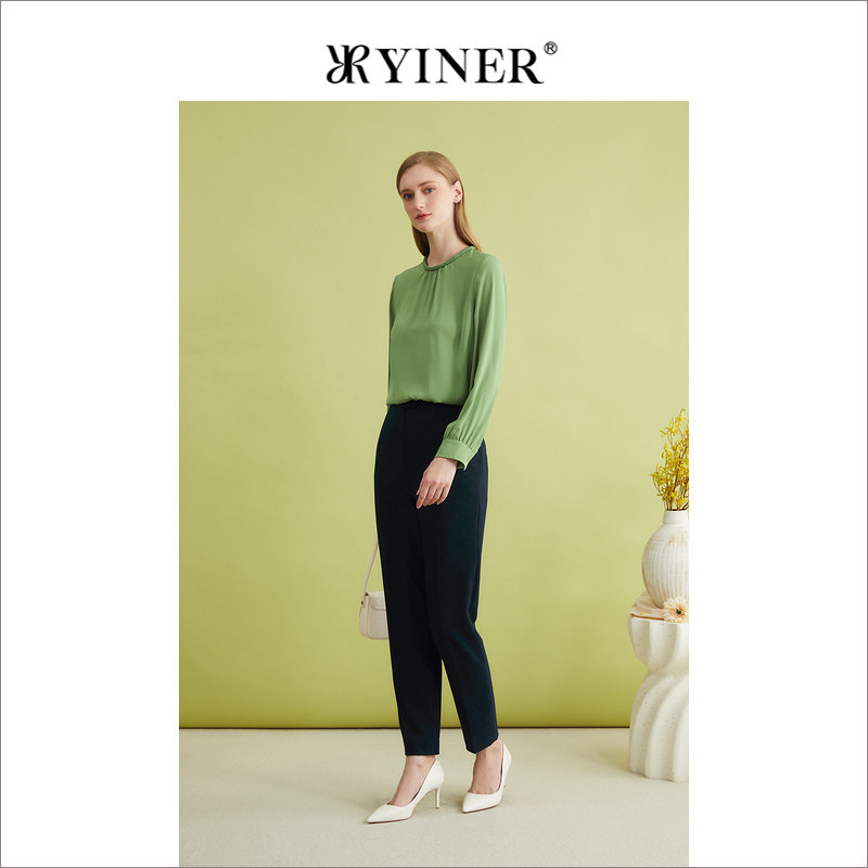 YINER音儿专选春季法式优雅通勤含绵羊毛小脚休闲裤