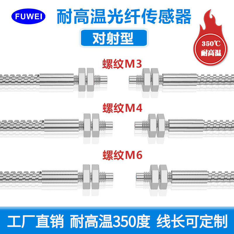 FUWEI高温玻璃光纤传感器探头对射反射直角350度封边机感应器M3M4