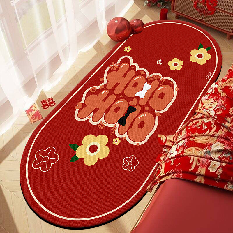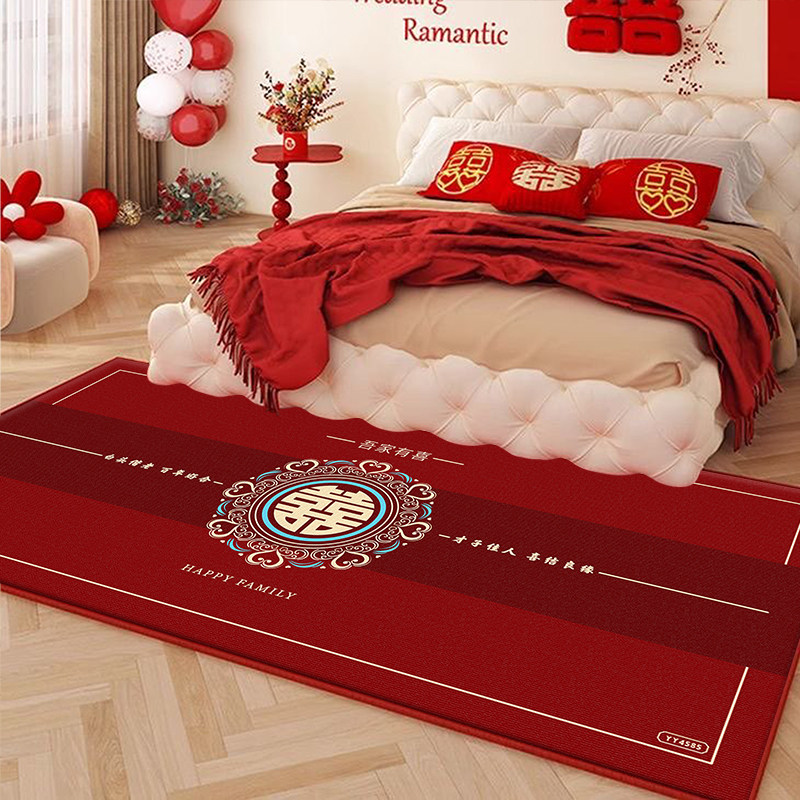 新款结婚婚房布置红色喜庆喜字布置装饰床边毯地毯卧室家用脚垫子