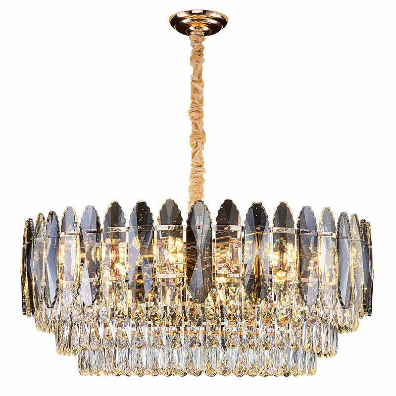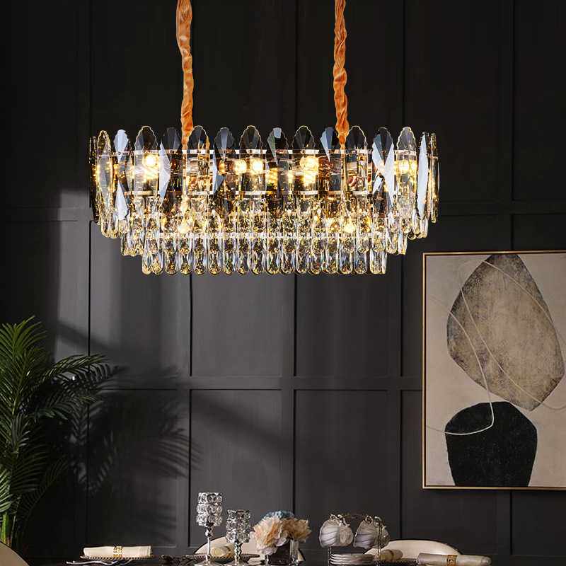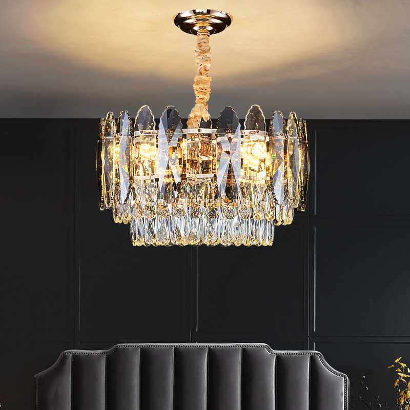 现代轻奢大厅水晶吊灯简约圆形卧室餐厅创意水晶客厅灯吸吊两用灯