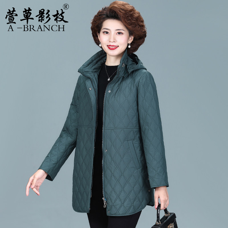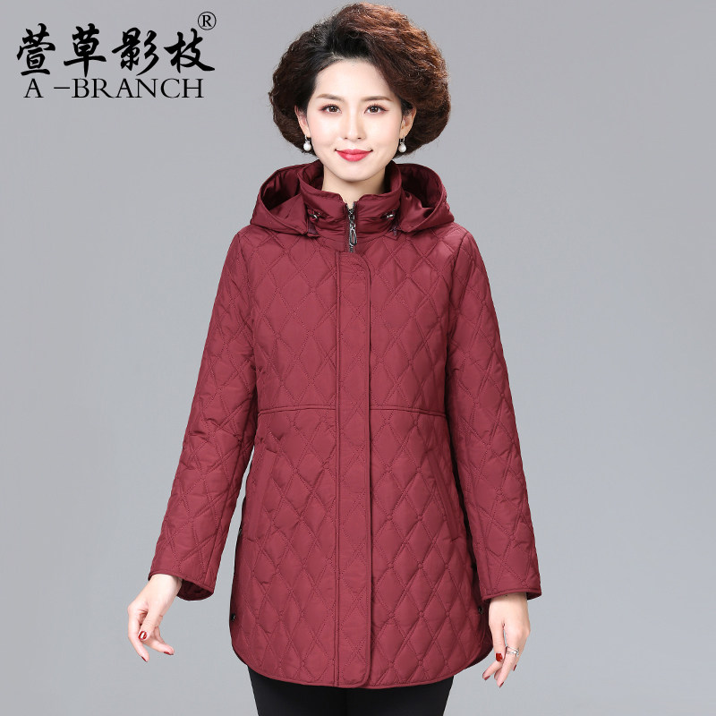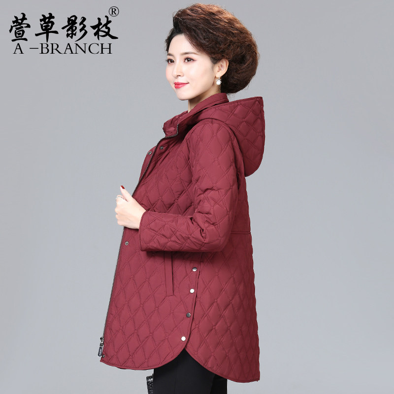 妈妈冬装洋气连帽羽绒服短款中年女时尚大码外套中老年保暖厚棉袄
