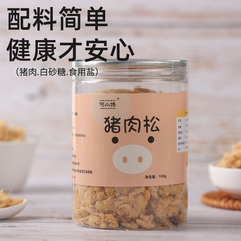 何小馋无油炒制原味手工猪肉松肉松不添加豌豆粉寿司专用营养拌饭