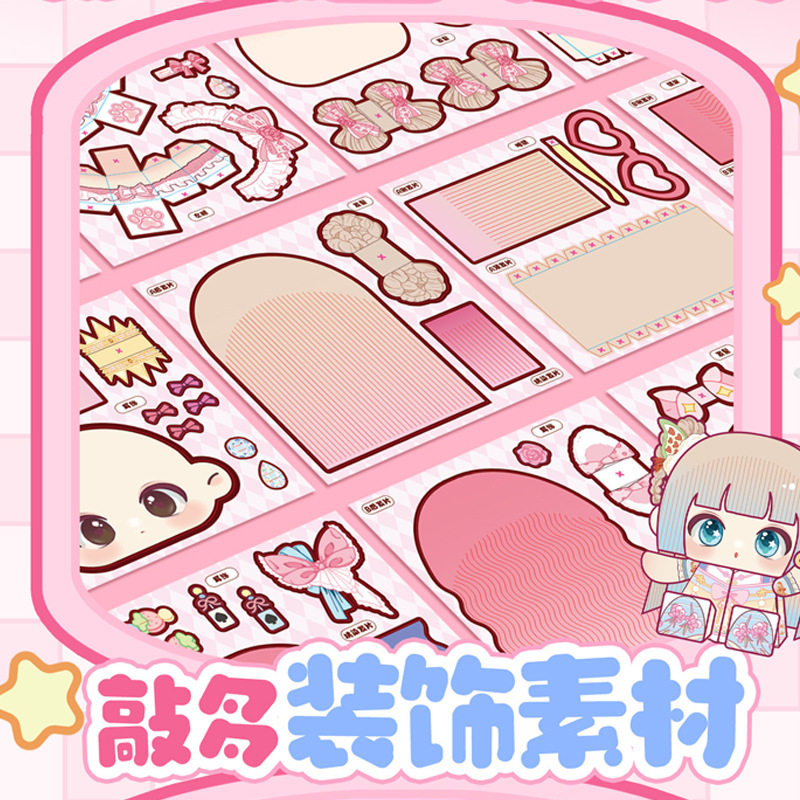 萌崽新款学霸学渣果冻贴纸安静书儿童免裁剪手工粘贴DIY女孩趣味玩具