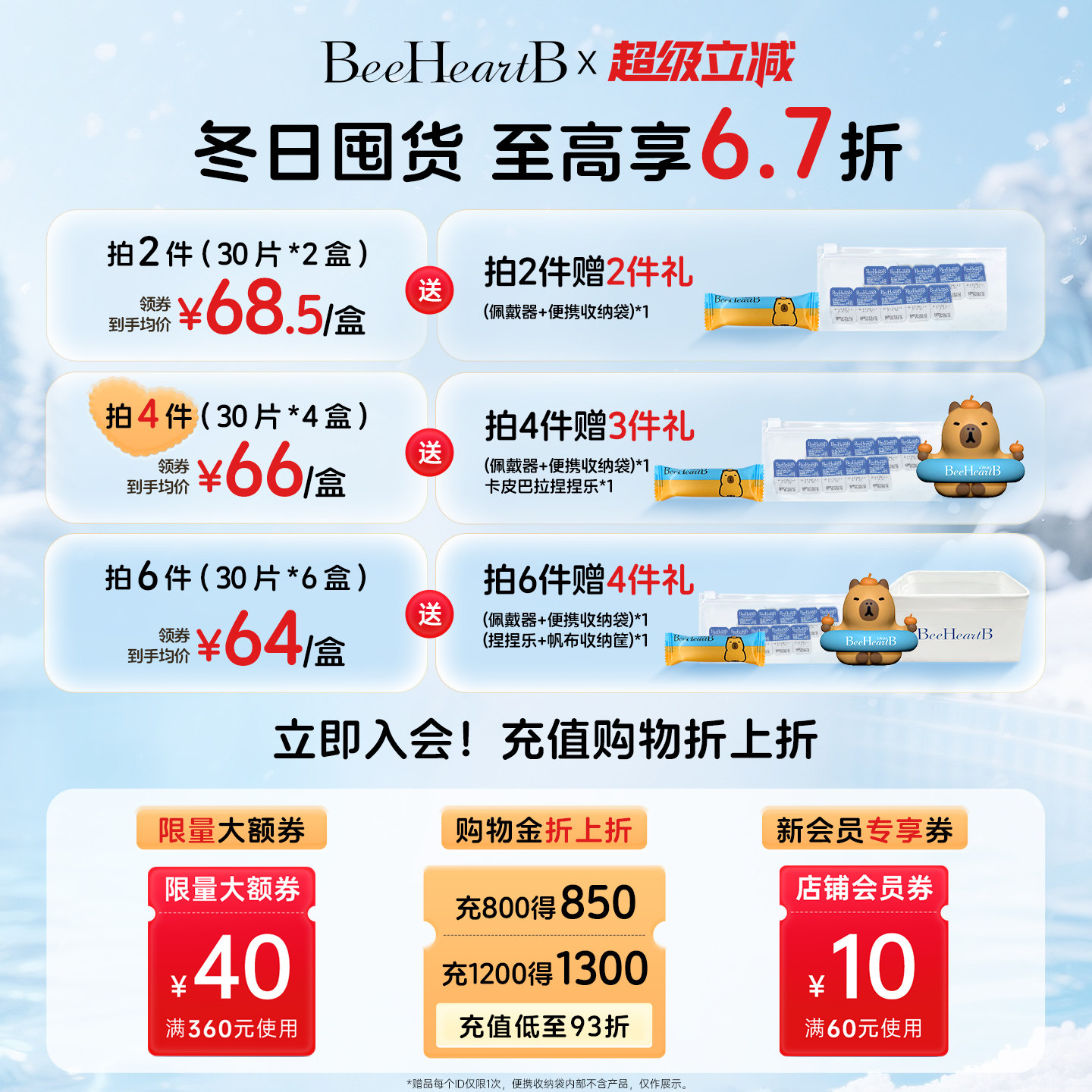 BeeHeartB卡皮巴拉联名日抛30片近视隐形眼镜38%含水量舒适蜜心妍