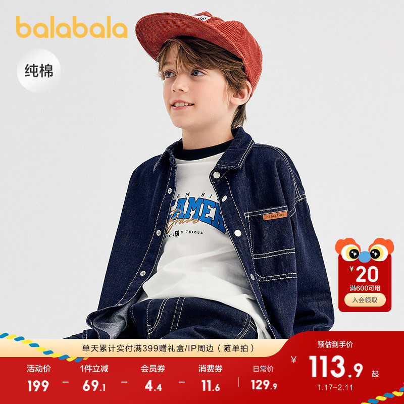 巴拉巴拉童装男童衬衫儿童长袖2025新款秋牛仔衫宽松休闲时尚潮酷