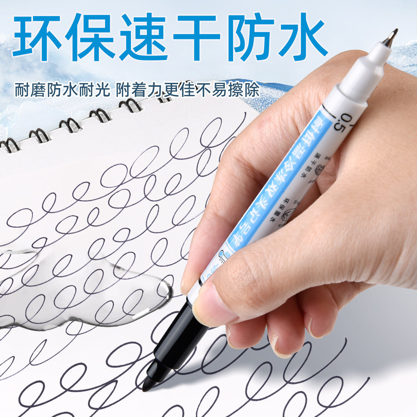 晨光双头黑色油性记号笔学生美术专用大容量勾线笔防水速干不掉色