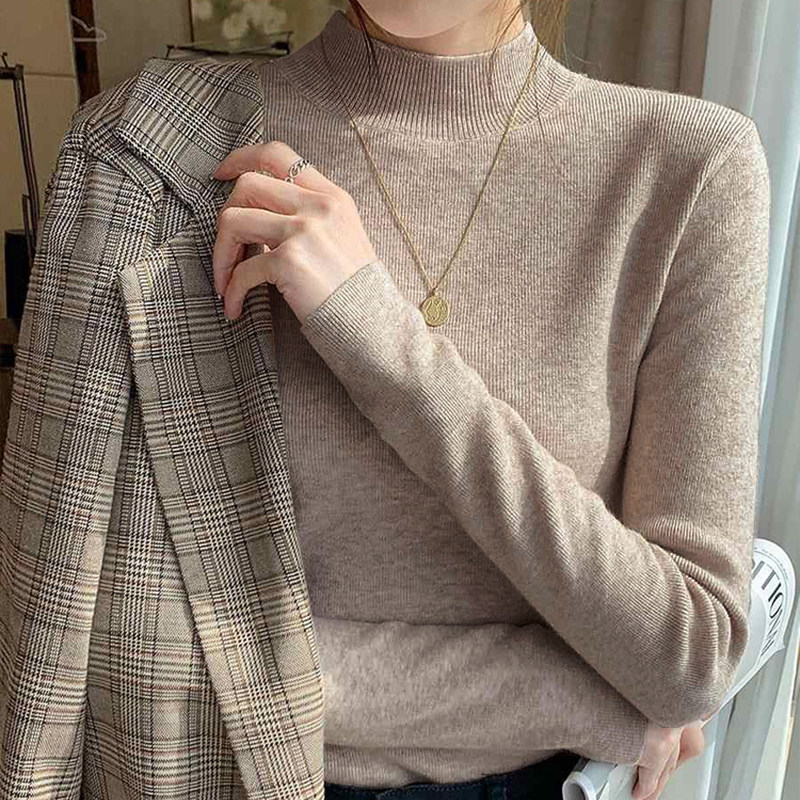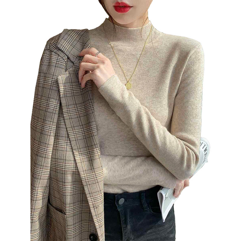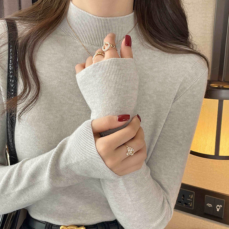 NG真维斯半高领打底衫女士秋季韩系修身百搭纯色内搭保暖针织毛衫
