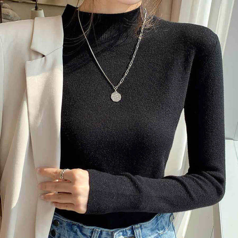 K1【爆款秒杀】半高圆领针织衫套头大码宽松百搭打底针织