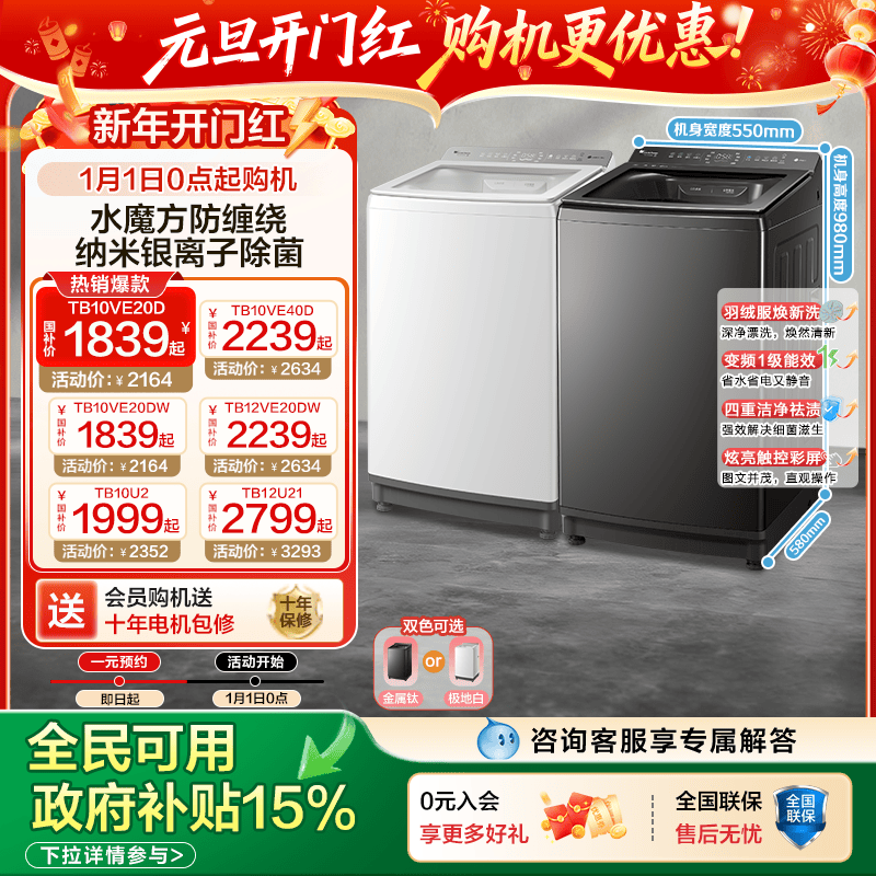 以旧换新小天鹅小乌梅2.0轻奢水魔方波轮全自动10/12kg洗衣机