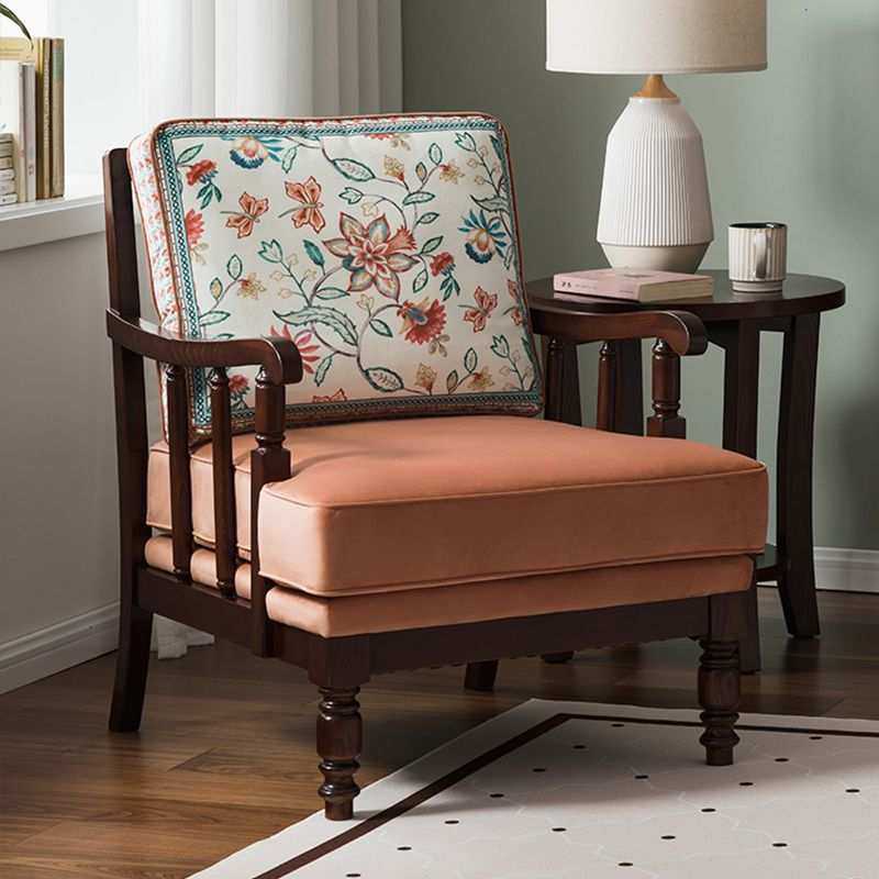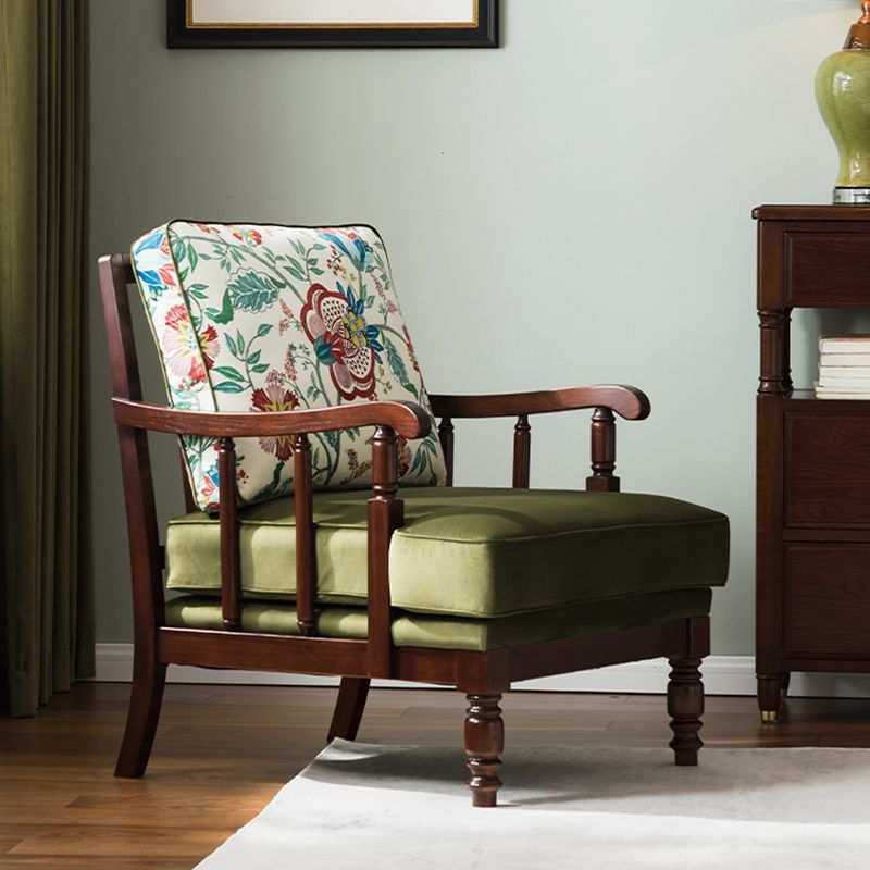 美式单人沙发实木沙发椅法式复古绿色老虎椅绒布布艺单人椅