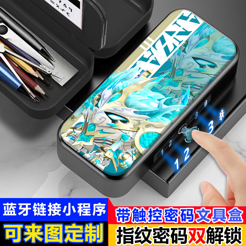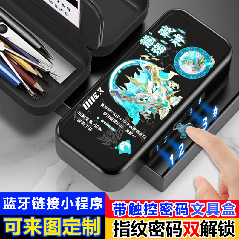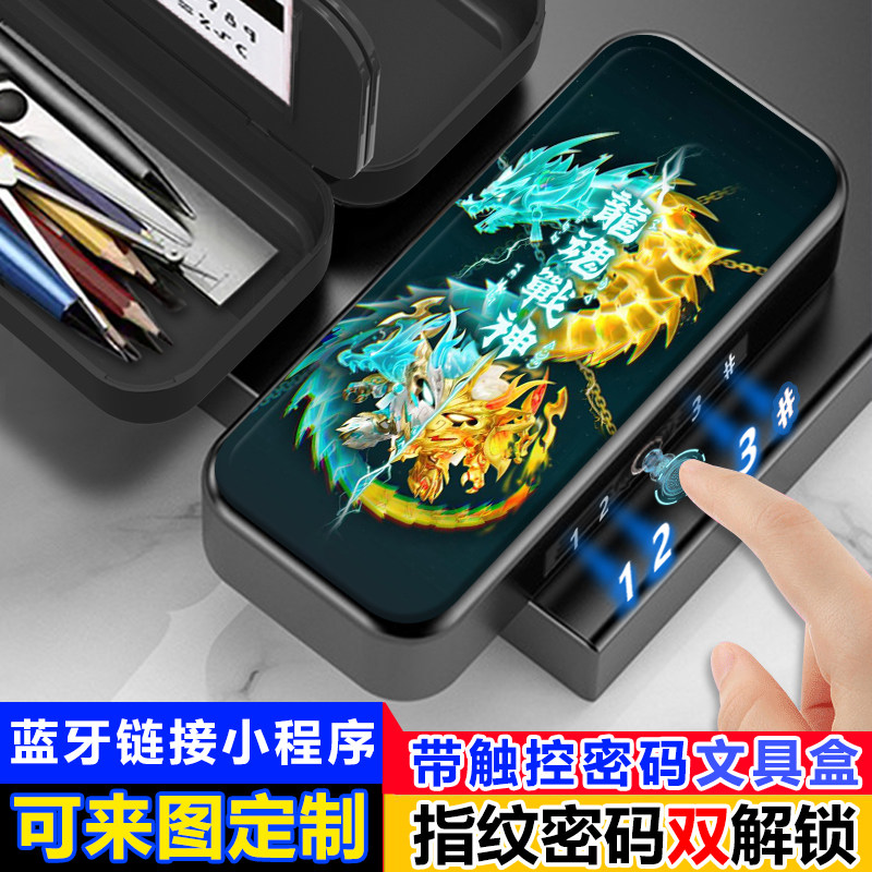龙魂战神蛋仔派对指纹解锁文具盒铅笔盒大容量学生密码锁男多功能
