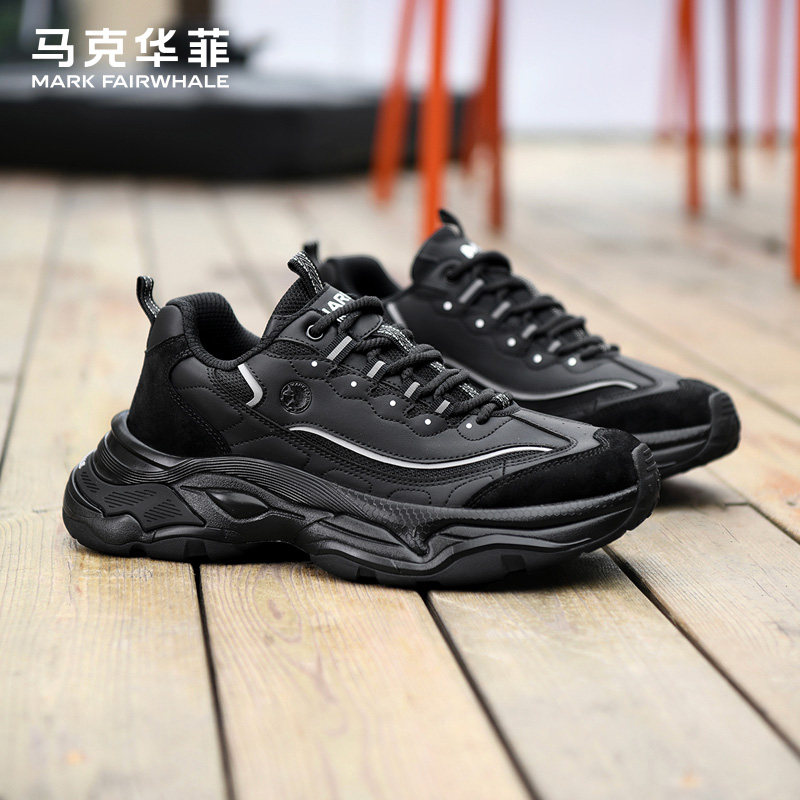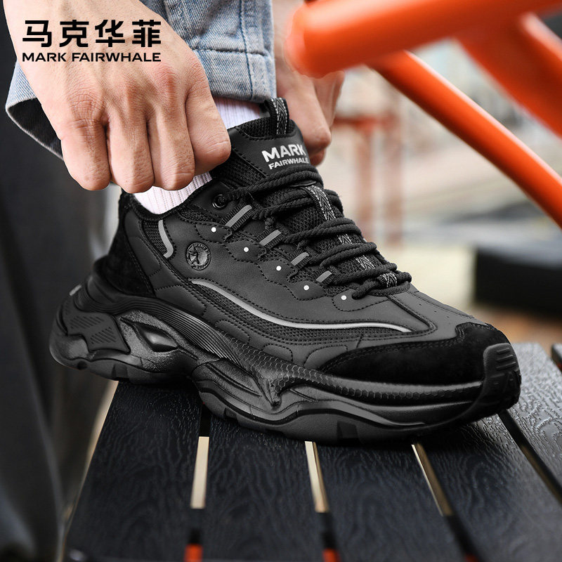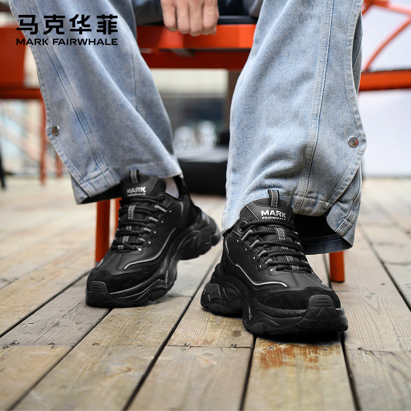 马克华菲运动鞋男2025秋季新款皮面老爹鞋男款增高休闲鞋男士潮鞋