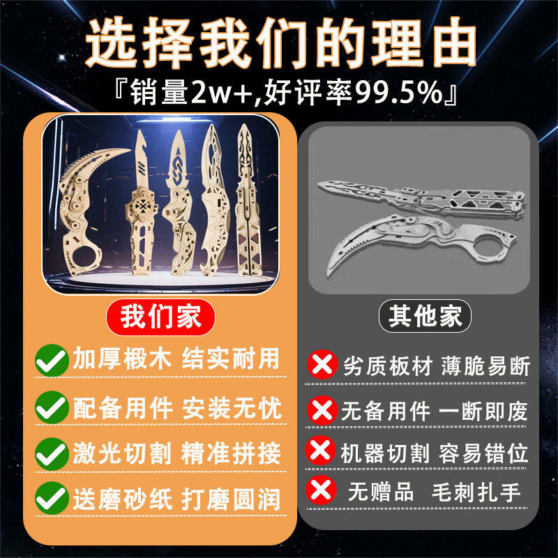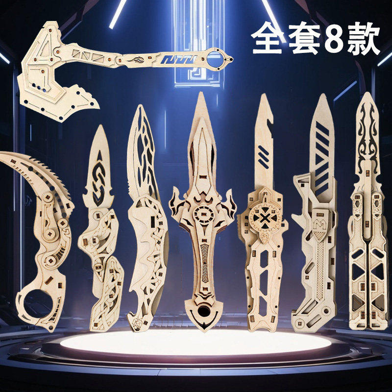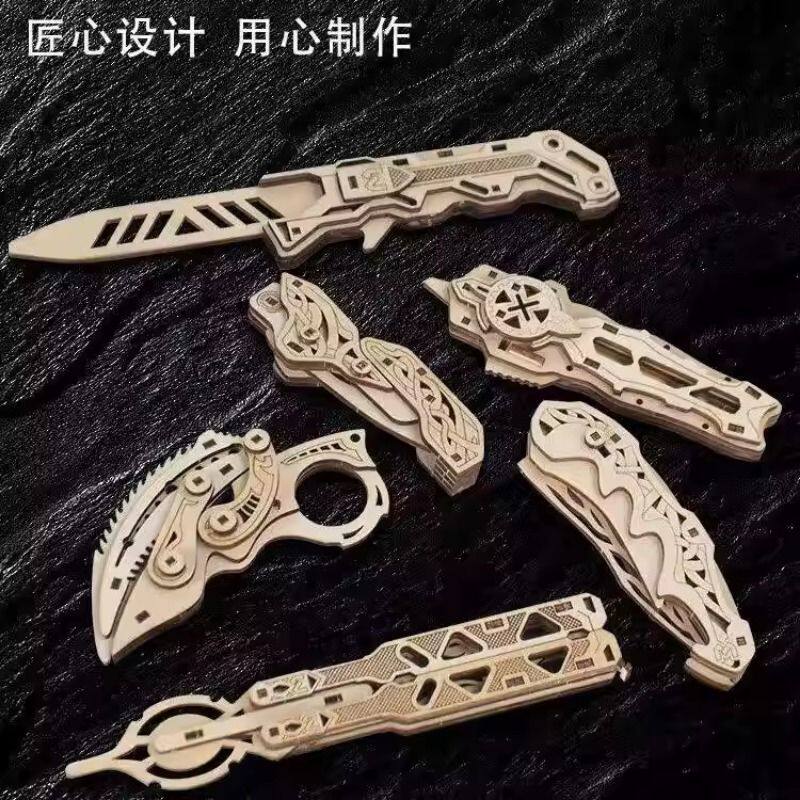 木质拼装模型战斧苦无折叠爪刀拼图立体男孩男生玩具生日礼物木制