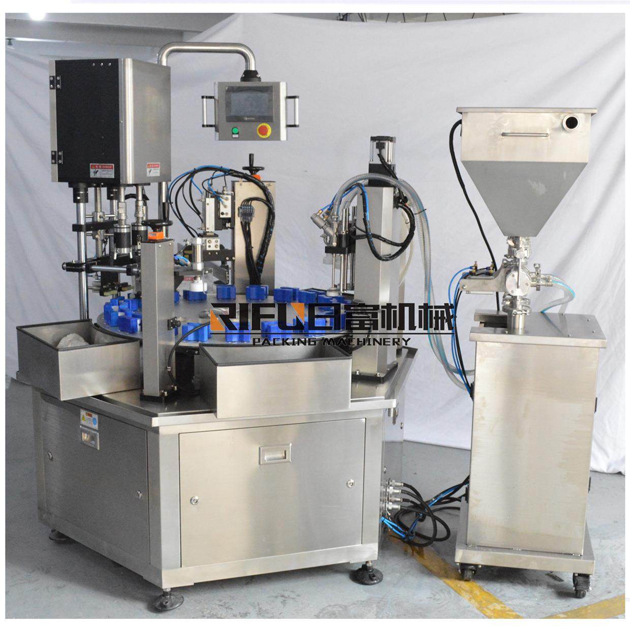 转盘式水乳灌装旋盖一体机爽肤水护手霜膏霜灌装机全自动分装机