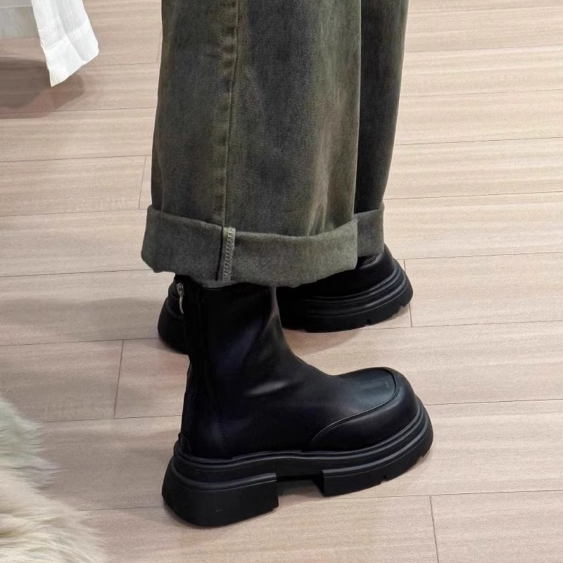 厚底黑色马丁靴女2025新款秋冬加绒英伦风切尔西瘦瘦靴方头短靴子