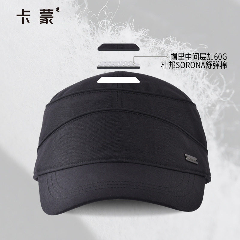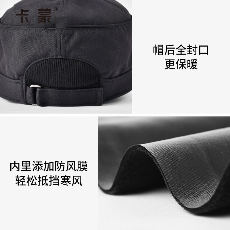 卡蒙防泼水加绒加厚鸭舌帽男秋冬大头围夹棉平顶帽子保暖抗菌发热
