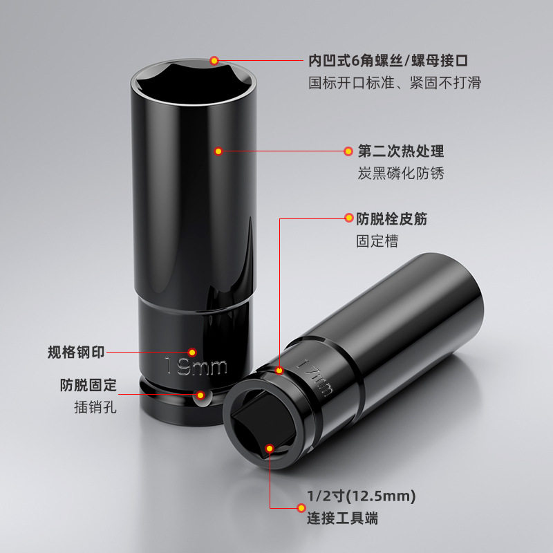 1寸大风炮加厚重型套筒电动气动25方省力扳手六角货车轮胎套头子