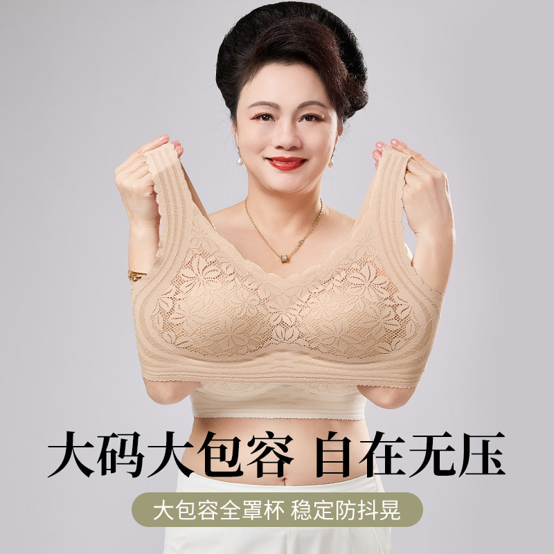 妈妈内衣文胸中老年人专用粉底液妇女美背心一体式大码胸罩夏薄款