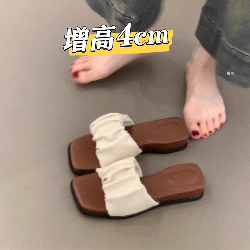 超好看厚底坡跟配裙子凉拖鞋女夏外穿2025新款一字高级感沙滩凉鞋