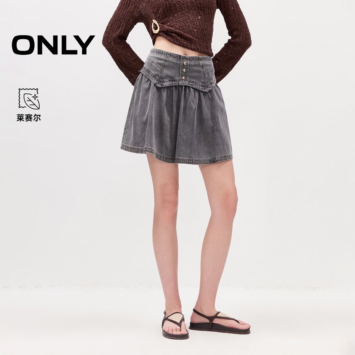 ONLY2026春季新款甜美复古腰封舒适莱赛尔短裙半身裙牛仔裙女