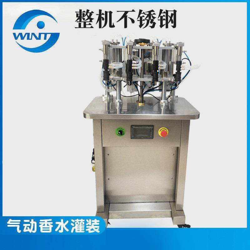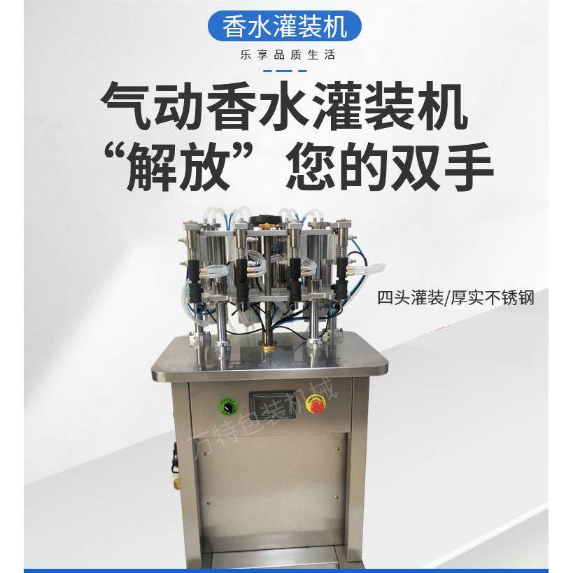 四头气动玻璃瓶香水真空负压液位灌装机精油花露水定量分装机